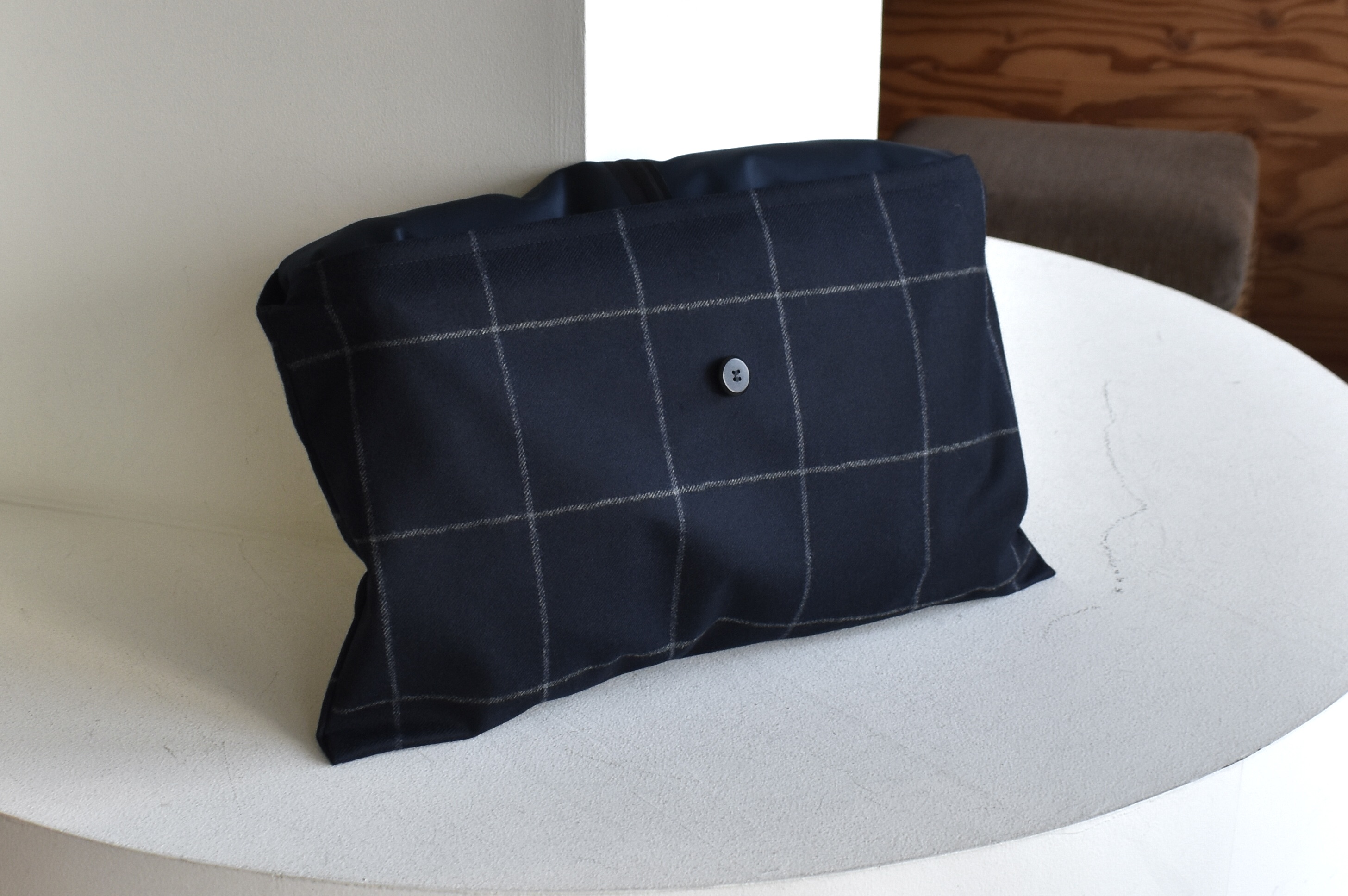 ネイビーのウィンドウペンのオーバーコートは、多様なコーディネートの仕上げとして、バッサリと上から羽織りたい逸品でしょうか。