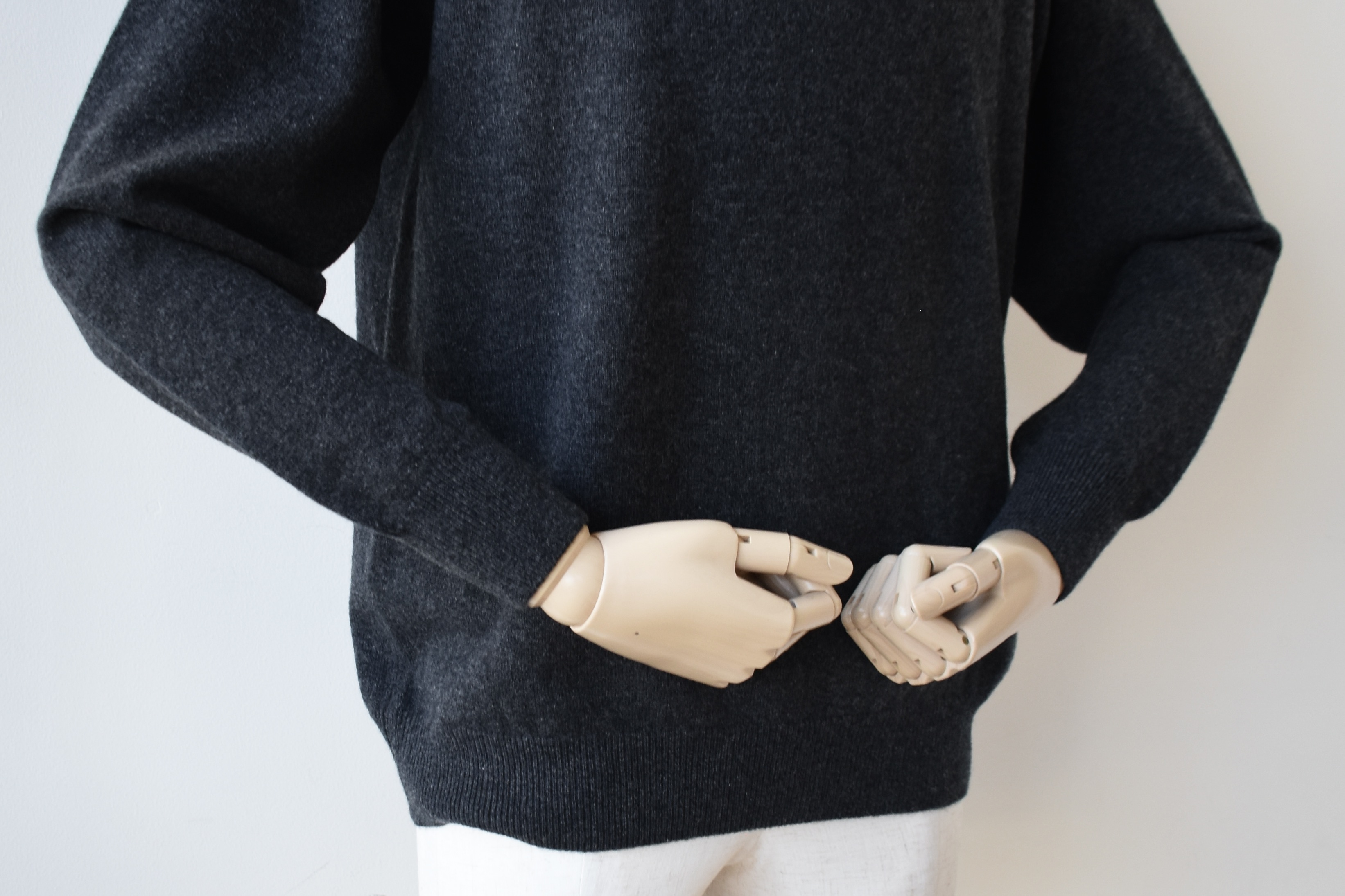 シンプルなラウンドネックのニットも、やはりレンコントラントならでは。注目してもらいたいのは、カシミア100%の上質な素材感、程よく緩さのあるフォルム、そして、良心的なプライスでしょうか。