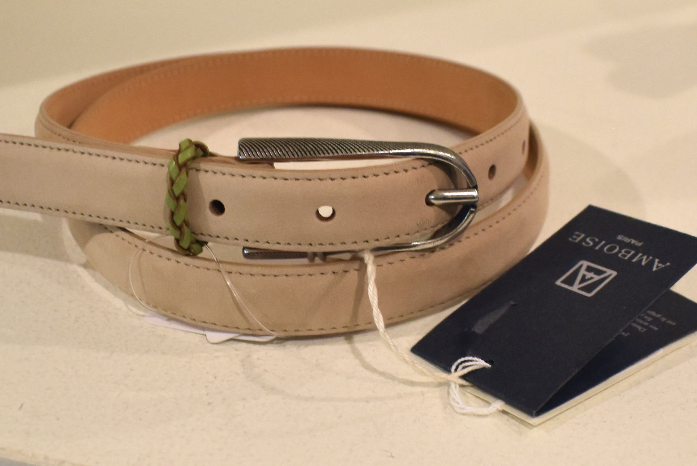 上質なレザー使いに、さり気ないデザインの入ったバックル。シンプルながら、存在感のあるベルトです。フランスの【AMBOISE/アンボワーズ】は、メンズで自分も1本持っていますが、良いブランドです。本日ご夫婦でお見えになったお客様が、早速手に取っていかれました。