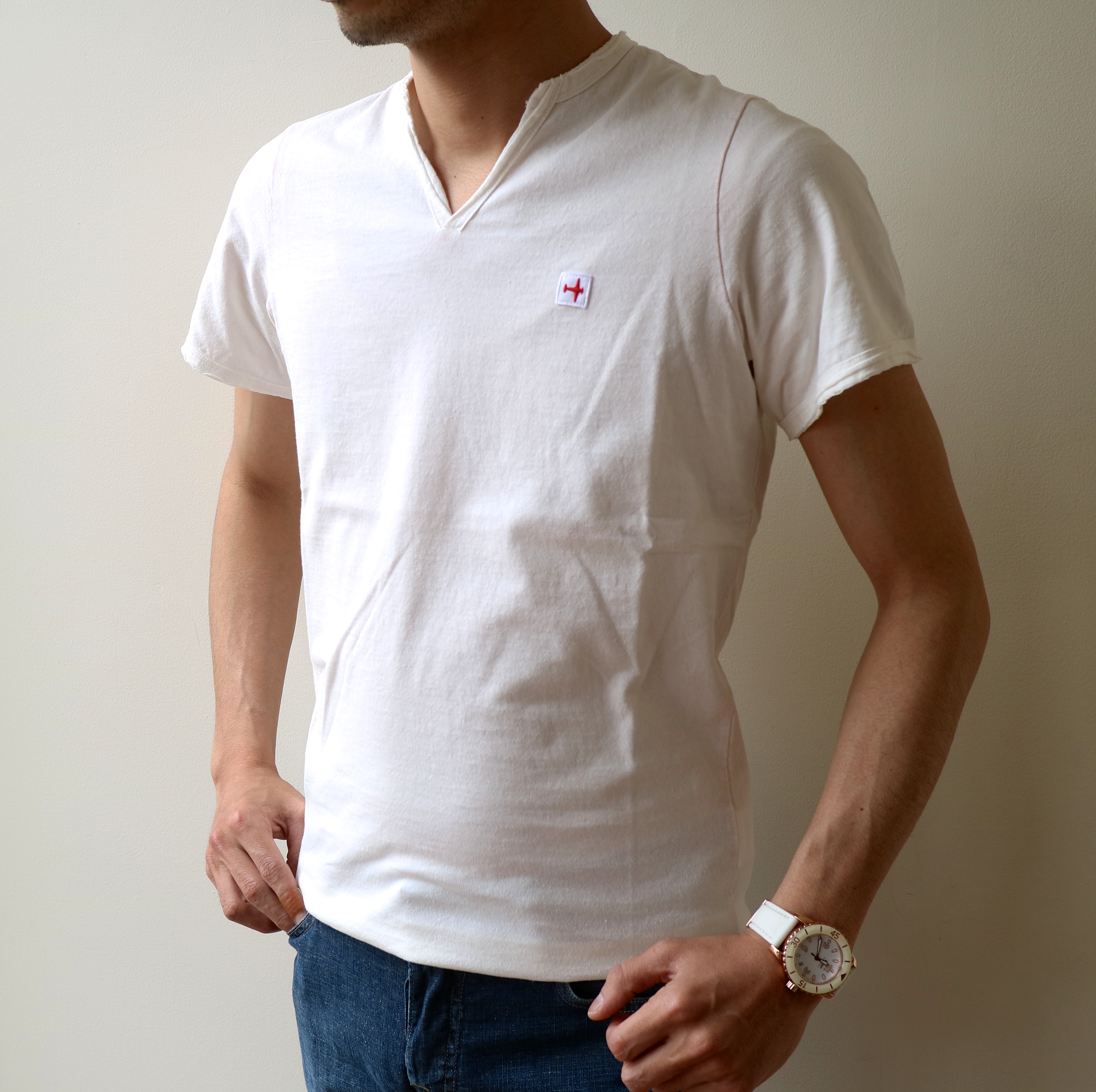 MODEL:ショートスリーブ スキッパーヘンリーネックTシャツ