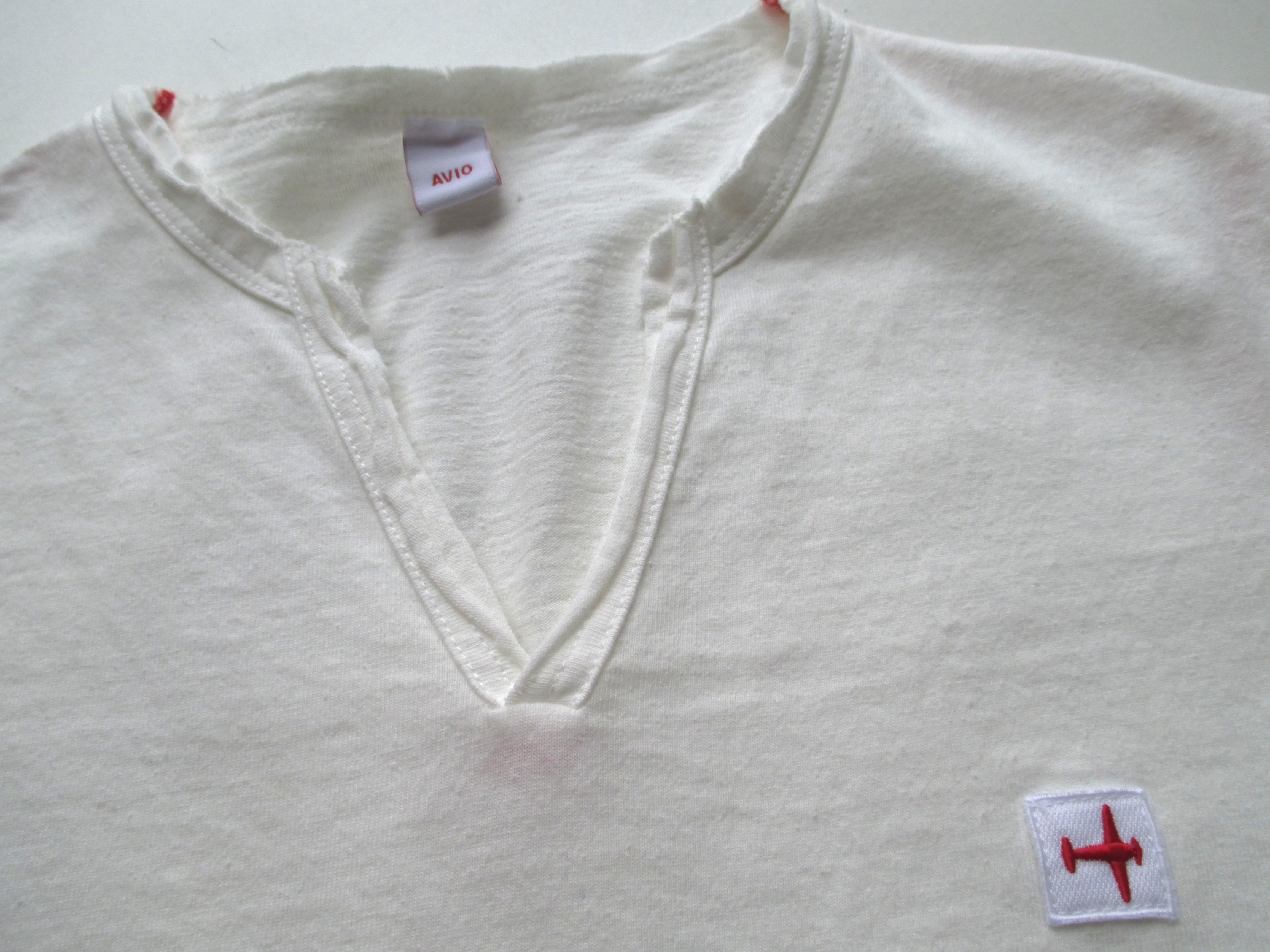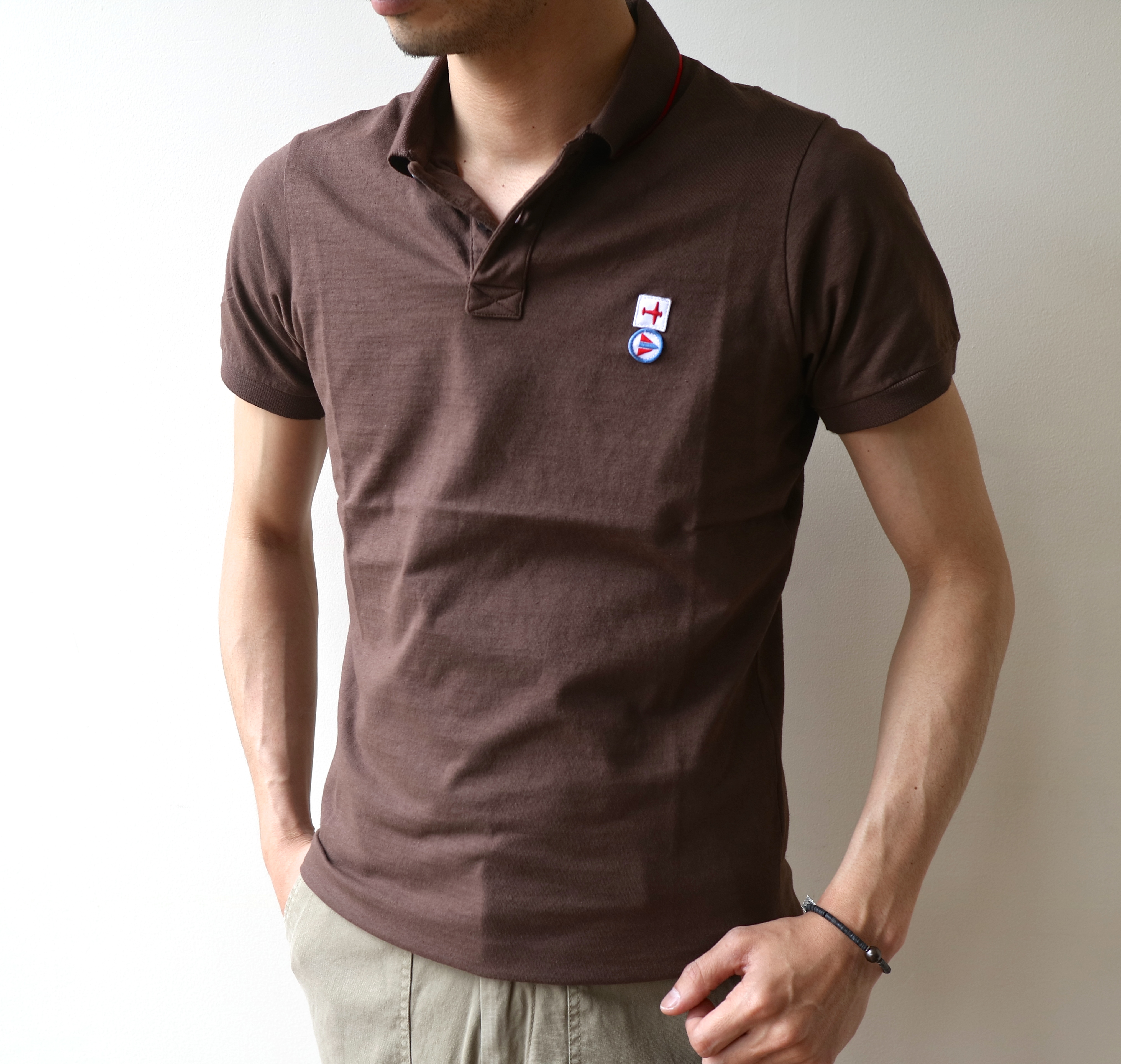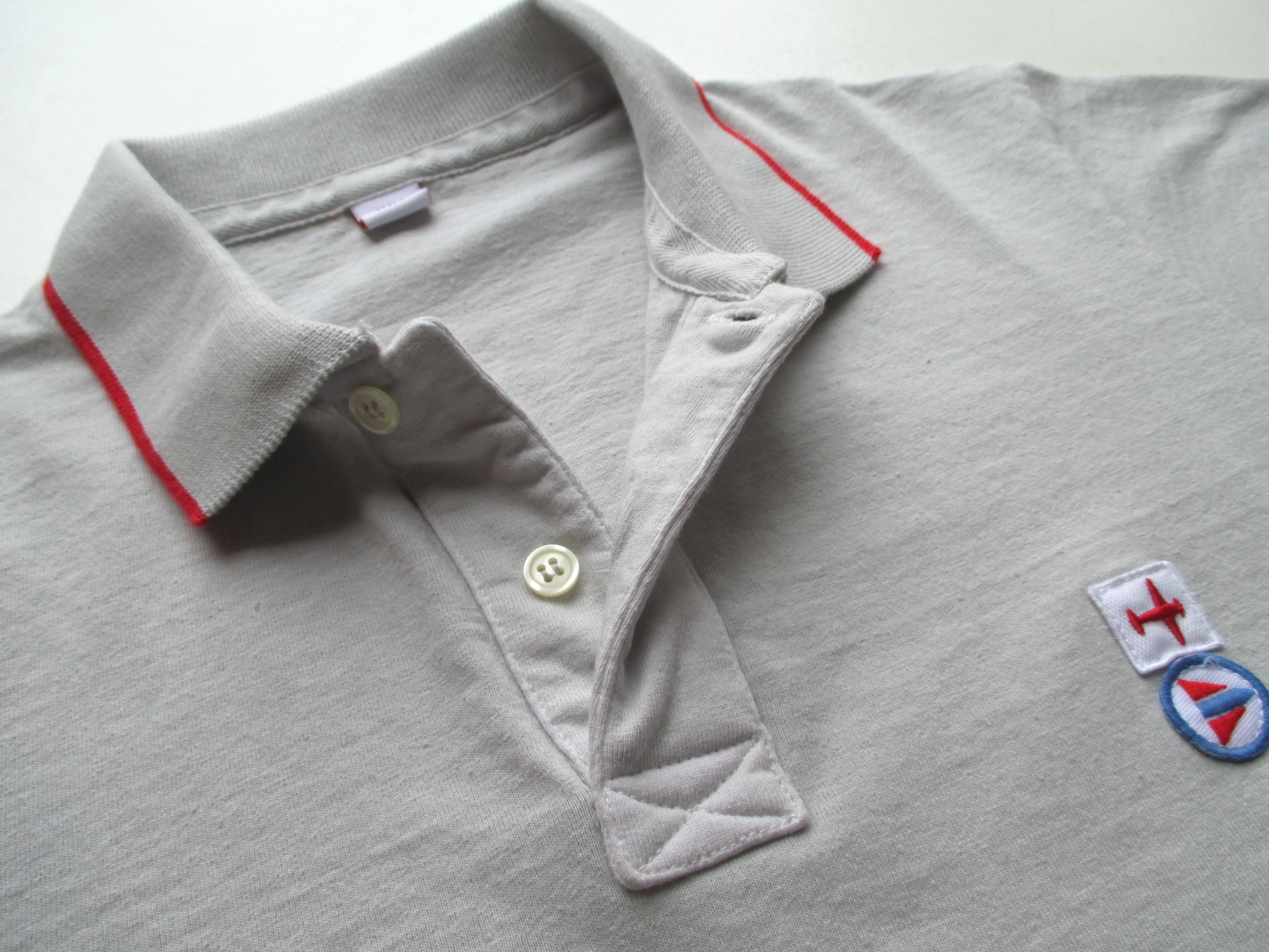 襟元に入ったレッドのラインがアクセントに。ポロシャツにはいつもの飛行機に加え、近代的な航空機(ジェット機もしくはロケットでしょうか)のマークが加えられ、こちらもワイポイントに。