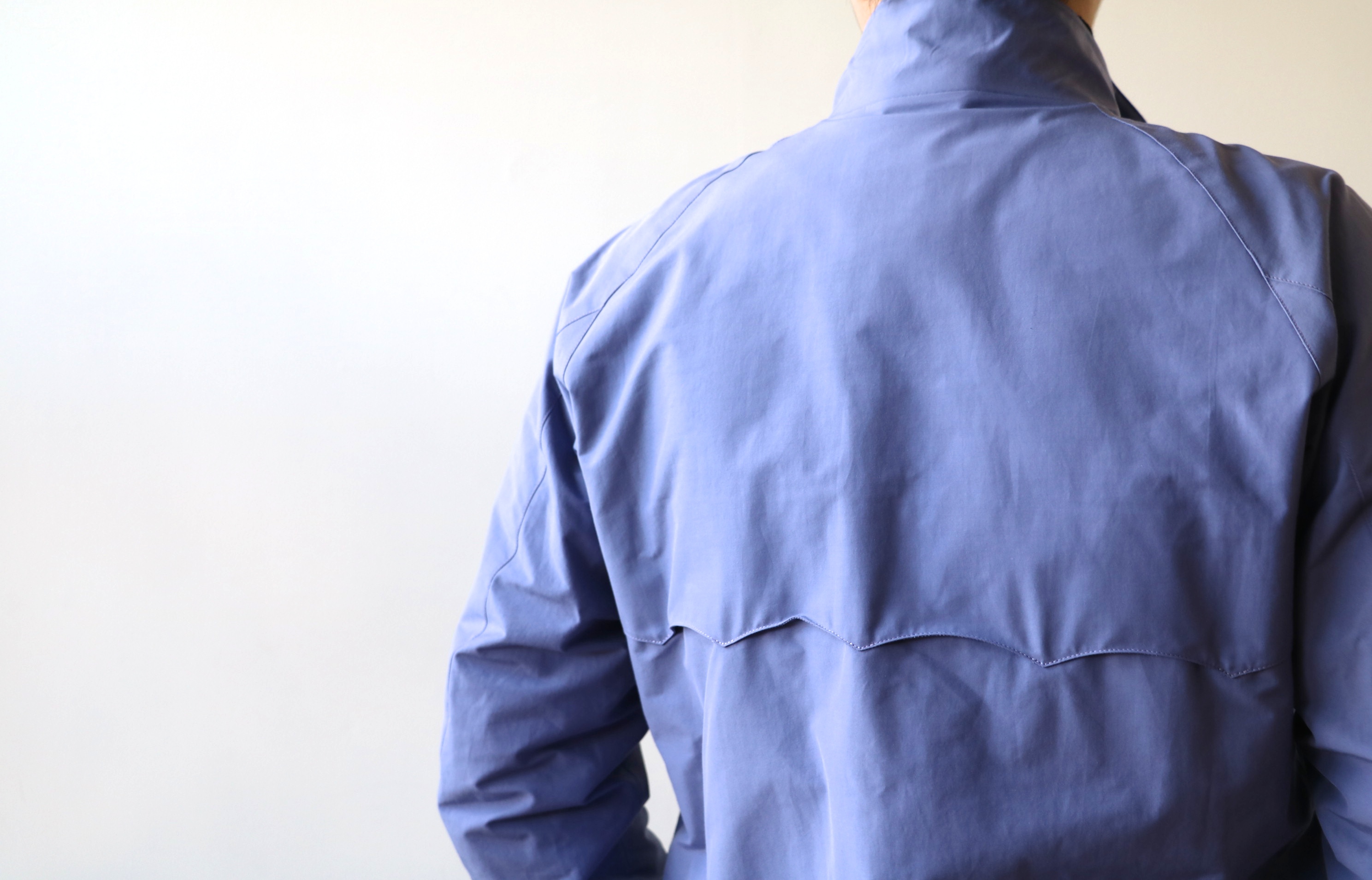 全てに意味のあるディテールに心惹かれます。チンストラップと一体になった通称ドッグイヤー(犬の耳に似た襟)と呼ばれる襟に、バラクータならではのフレーザータータン。スイングの際に肩の可動域を広げるために採用されたラグランスリーブ、背中の水滴が滑り落ちるようにデザインされたアンブレラヨーク、袖と裾は風を通さないリブ仕様になっております。