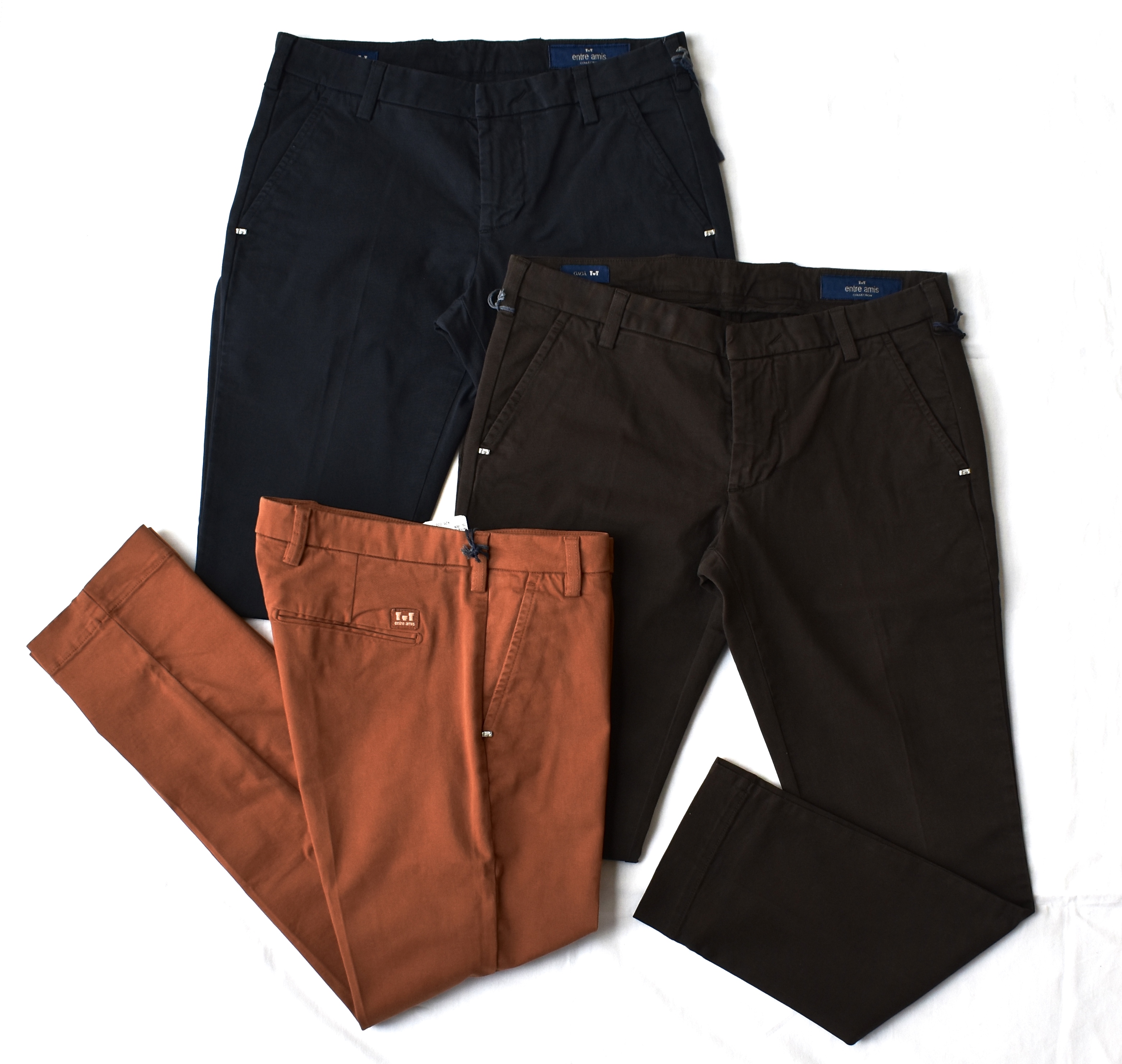 不思議と各色1点ずつになってしまったのは、アントレアミのコットンパンツ。ダークネイビーに、ダークブラウン、テラコッタの3色です。