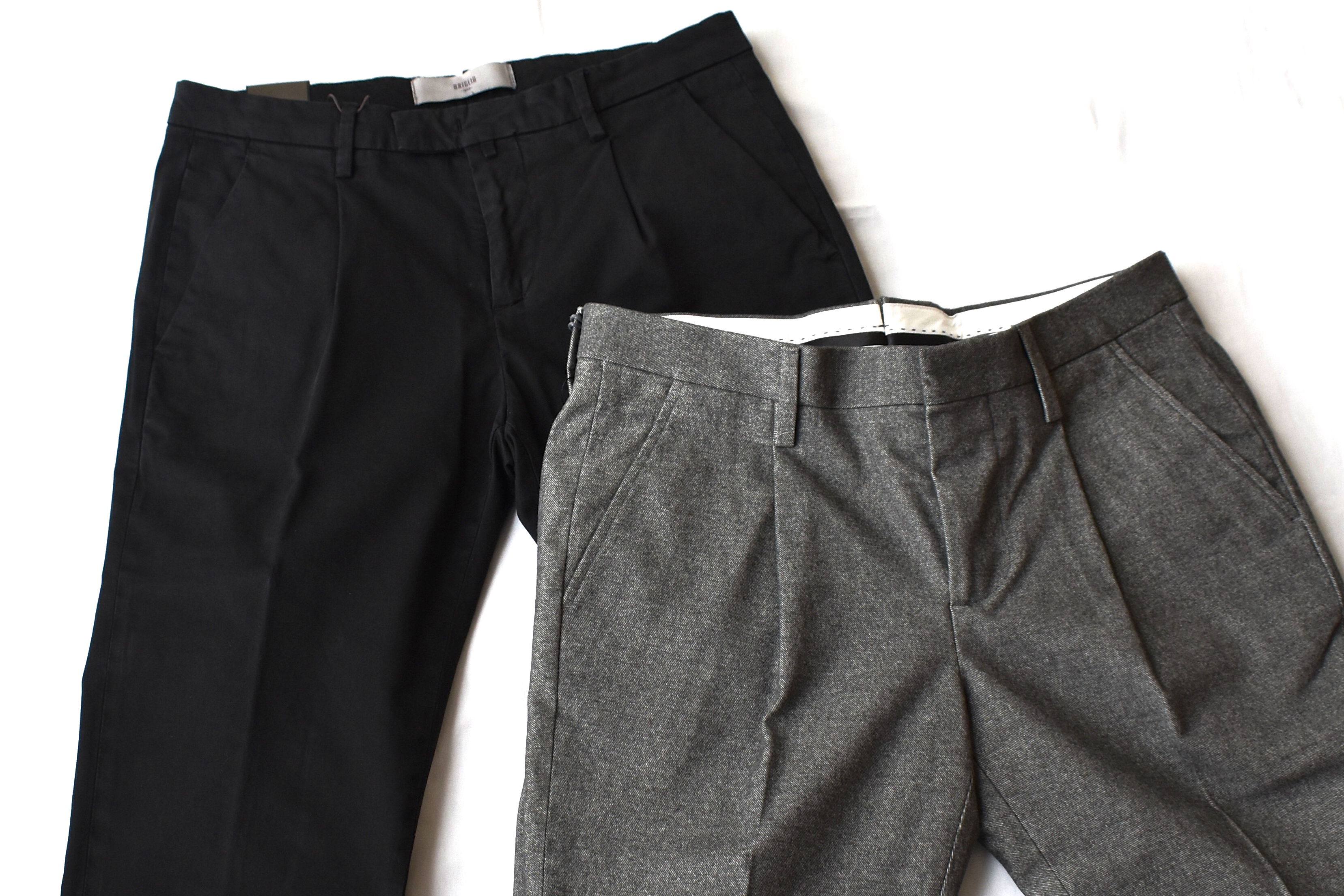 無彩色系は、こちら。ブラックパンツは、44サイズ。グレイパンツは30インチです。