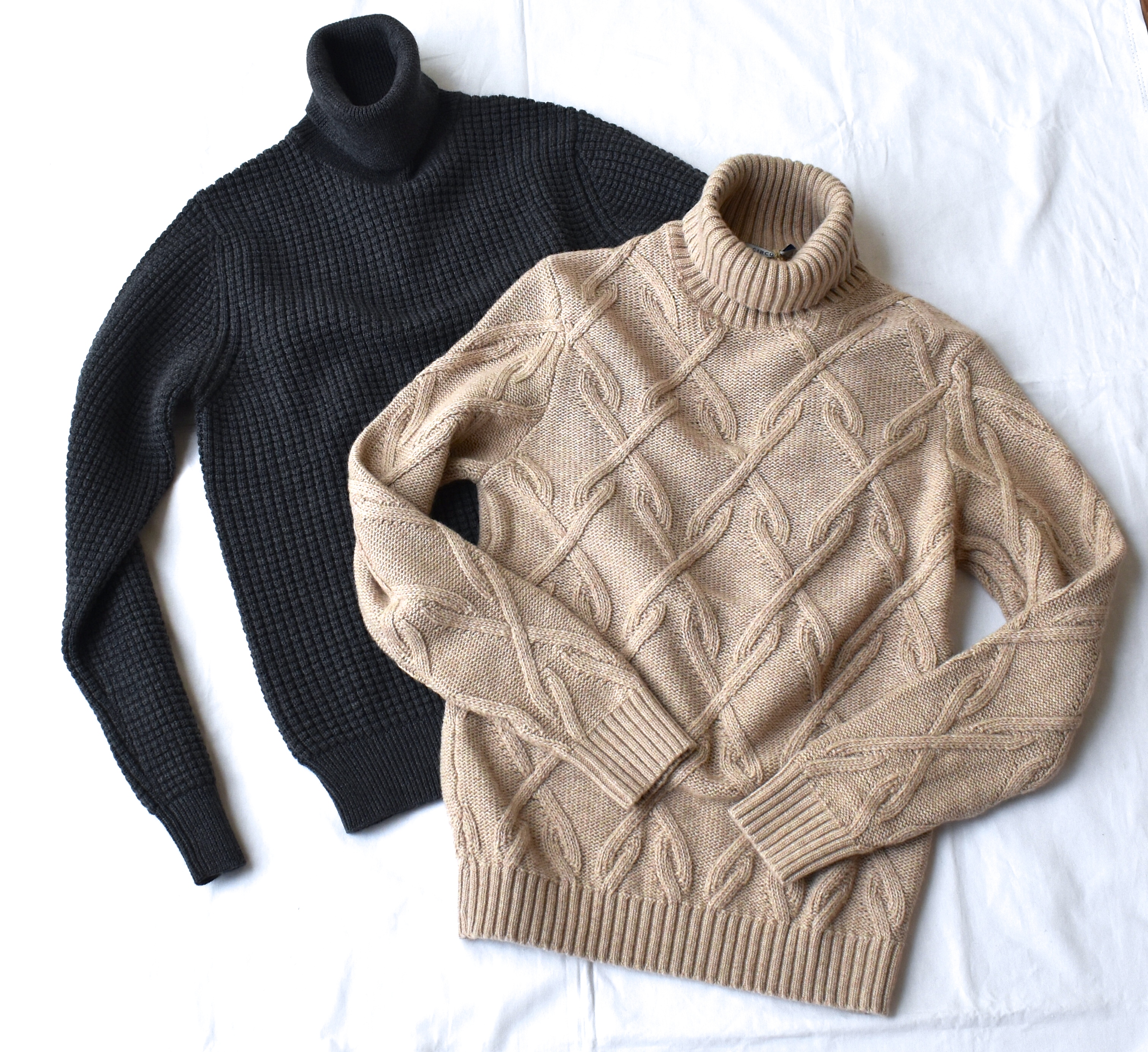 左:【DREW&CO./ドリューアンドコー】バスケット編み タートルネック