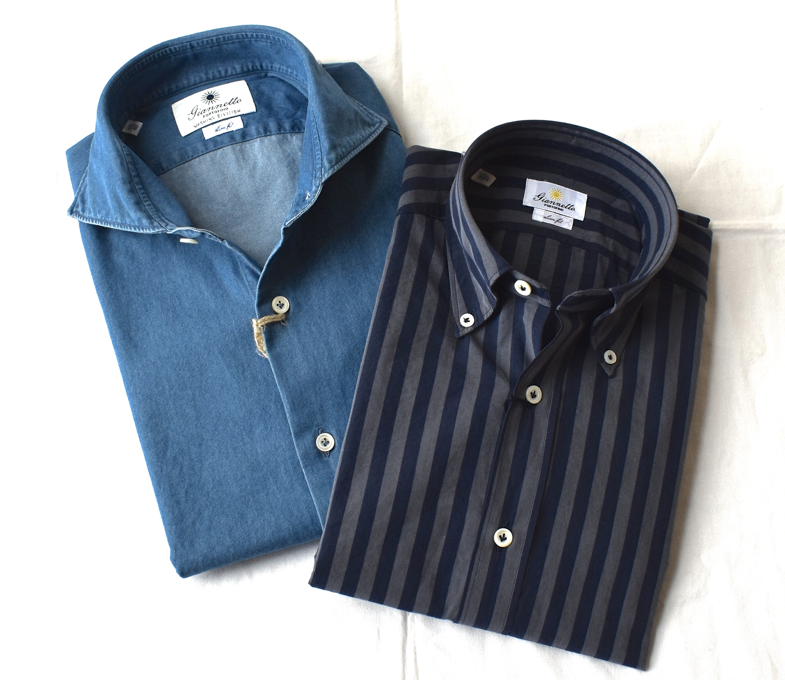 左:【Giannetto/ジャンネット】「SLIM FIT」ライトインディゴブルーデニムシャツ