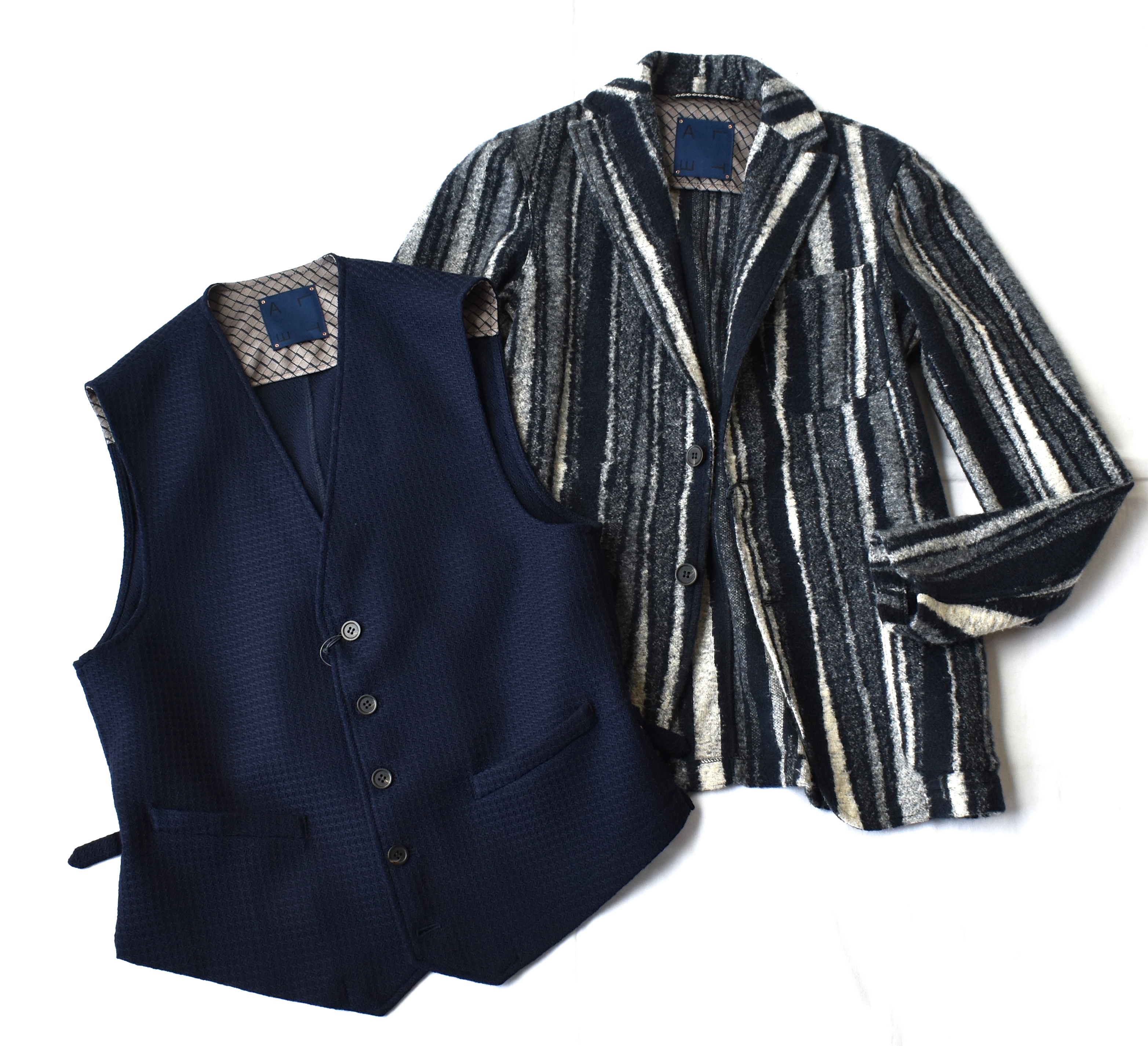 完売の一歩手前である、あと1点。More Smile SALEと掛けて、少々お値打ちにご提案しております。ジレがLサイズ、ジャケットがXSサイズです。