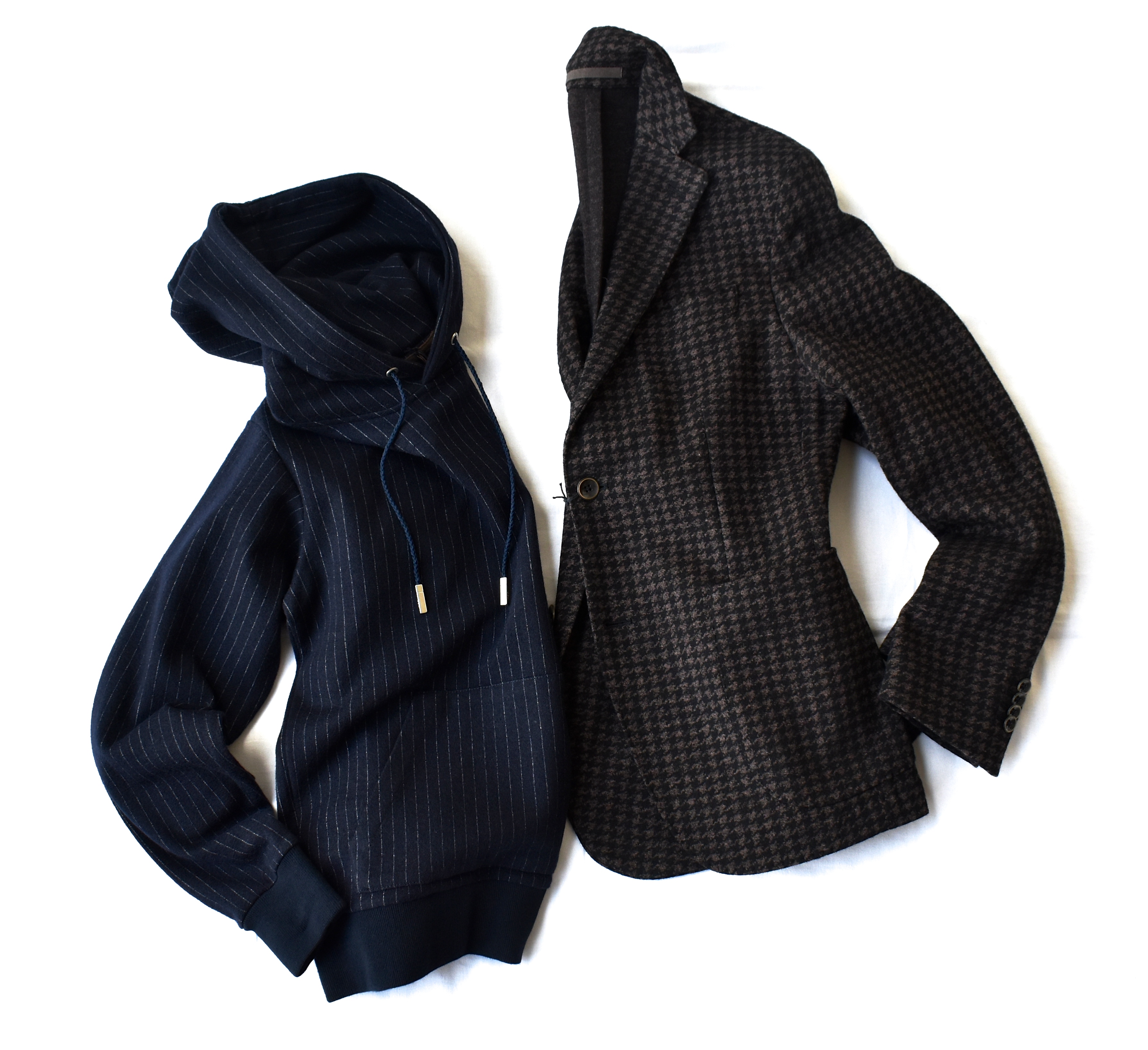 自慢のイレブンティも、あと1点になってしまいました。ピンストライプ柄のパーカーに、ハウンドトゥース柄のジャケット。どちらも今季人気を集めたモデルです。