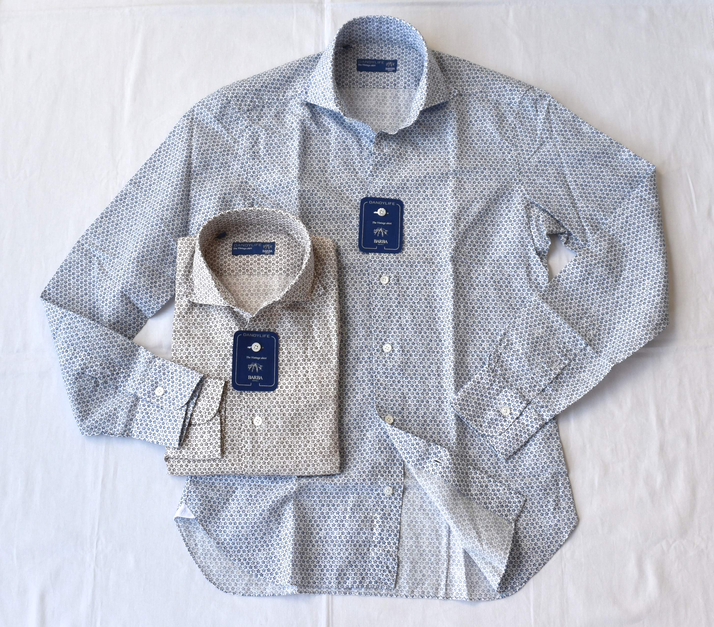 上:【BARBA】「DANDYLIFE」 コットン小紋プルオーバーシャツ