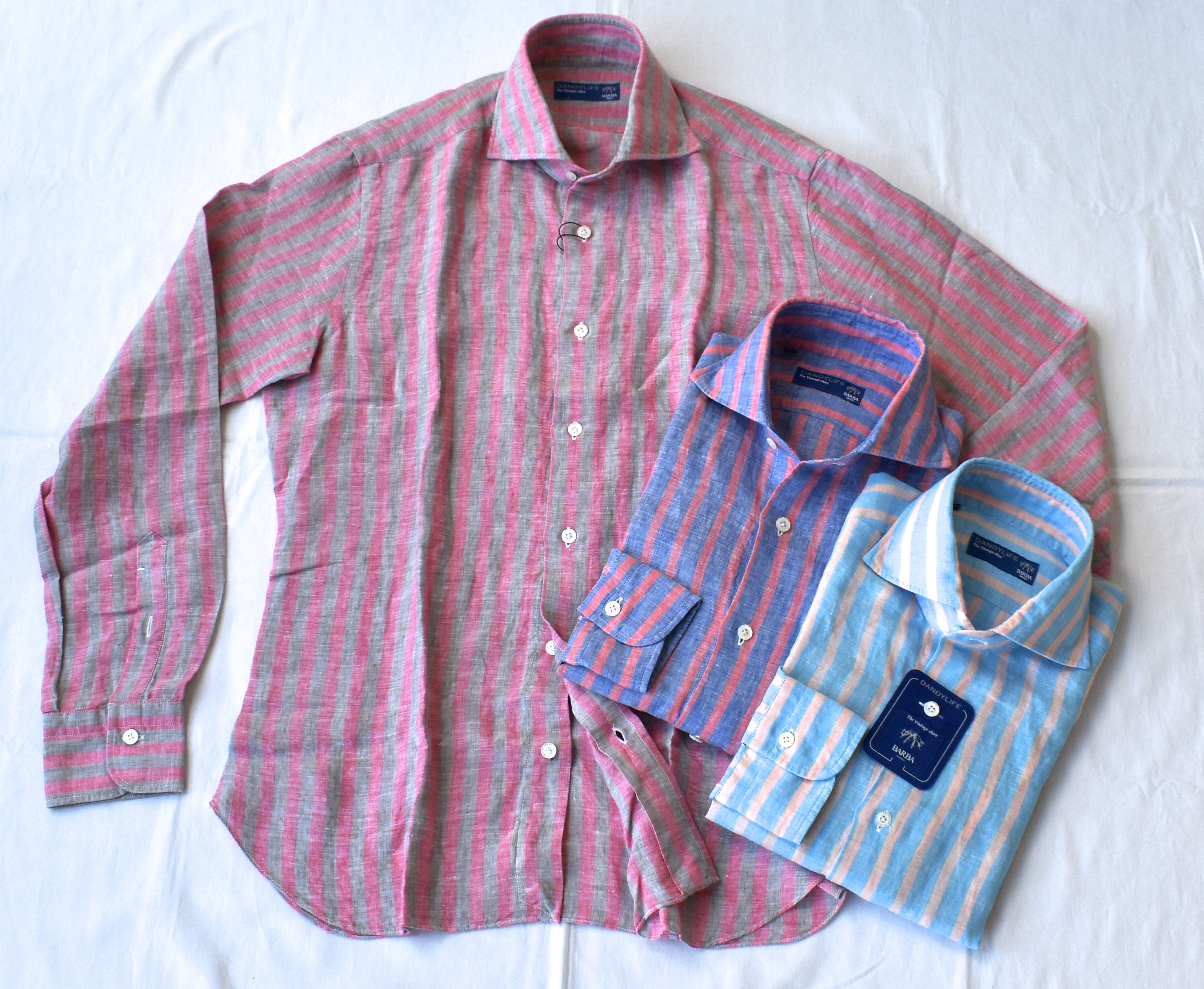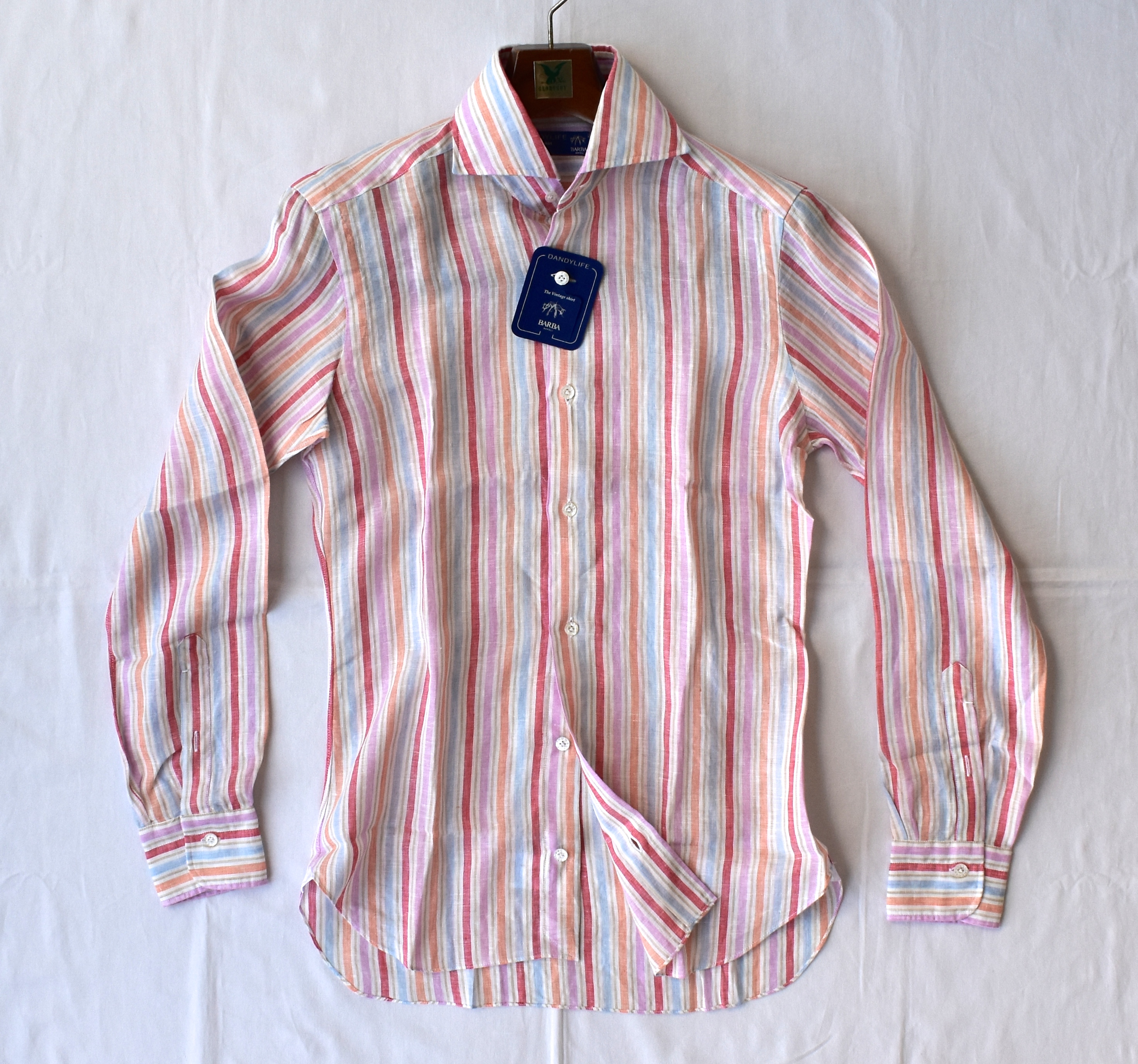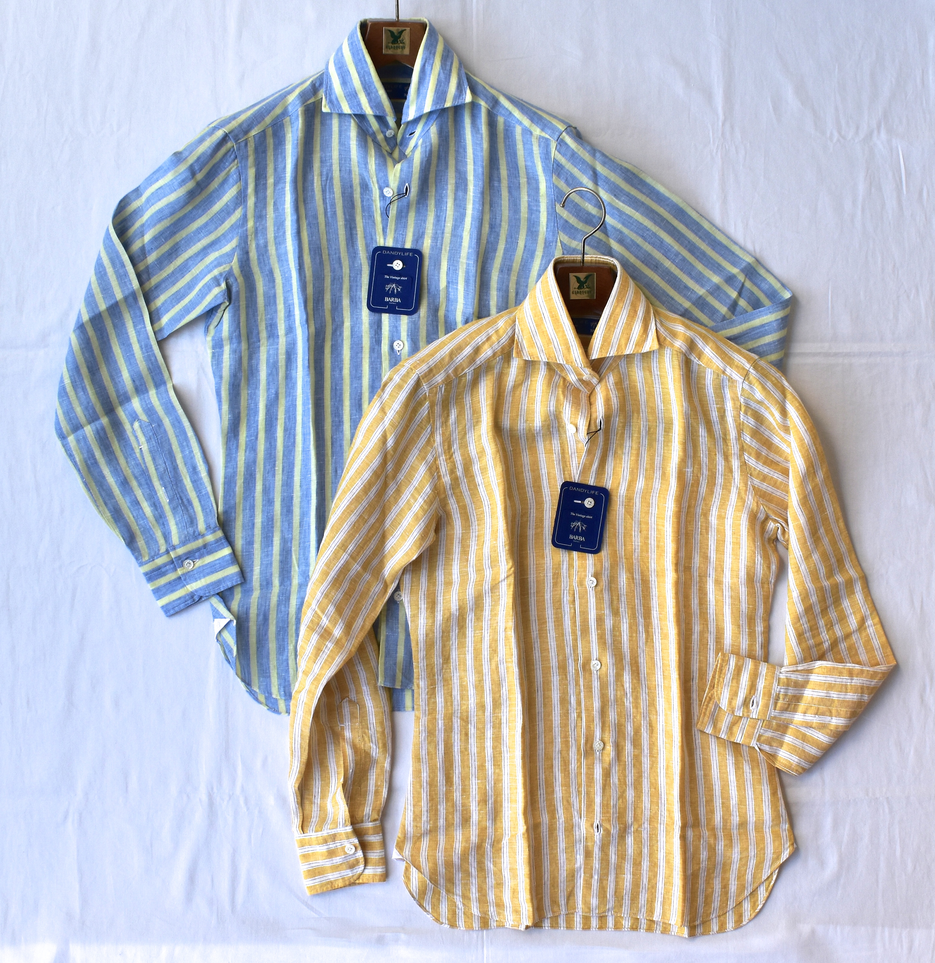 【BARBA】「DANDYLIFE」 リネン カラーベースストライプ柄シャツ