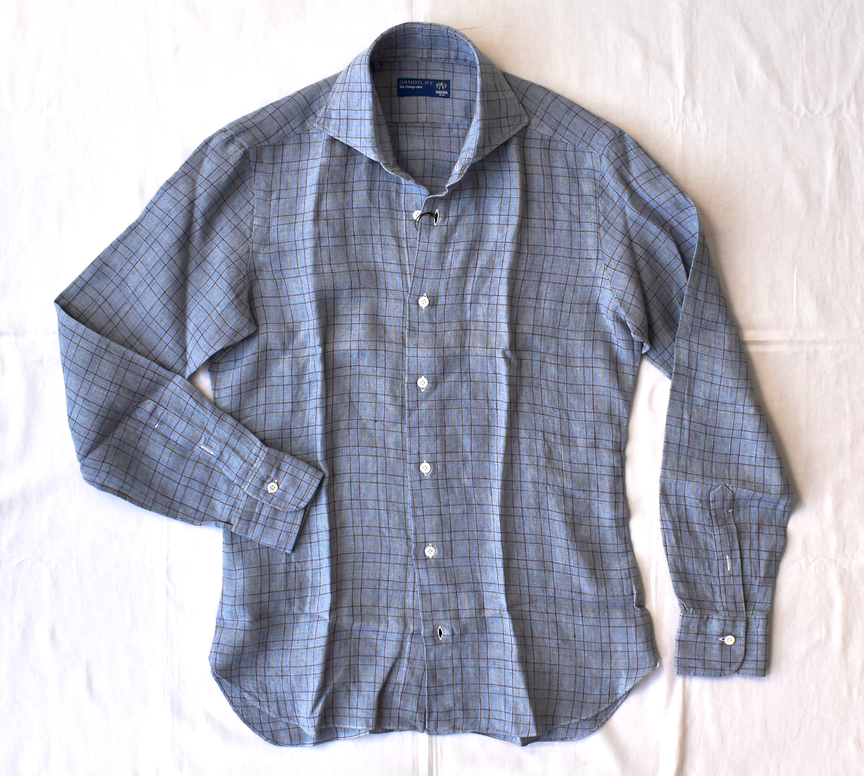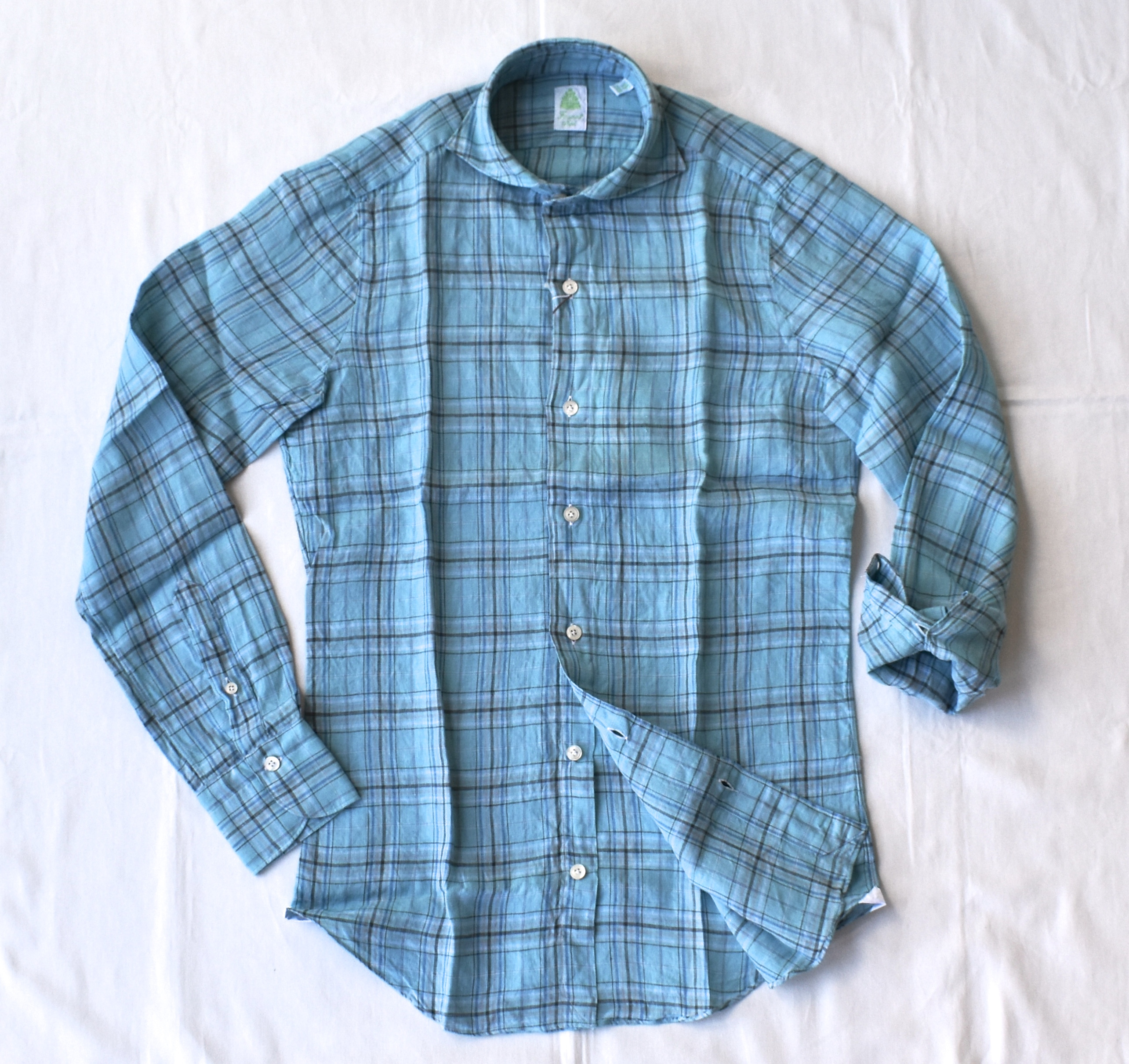 【Finamore】「SIMONE」 リネン100%チェック柄シャツ