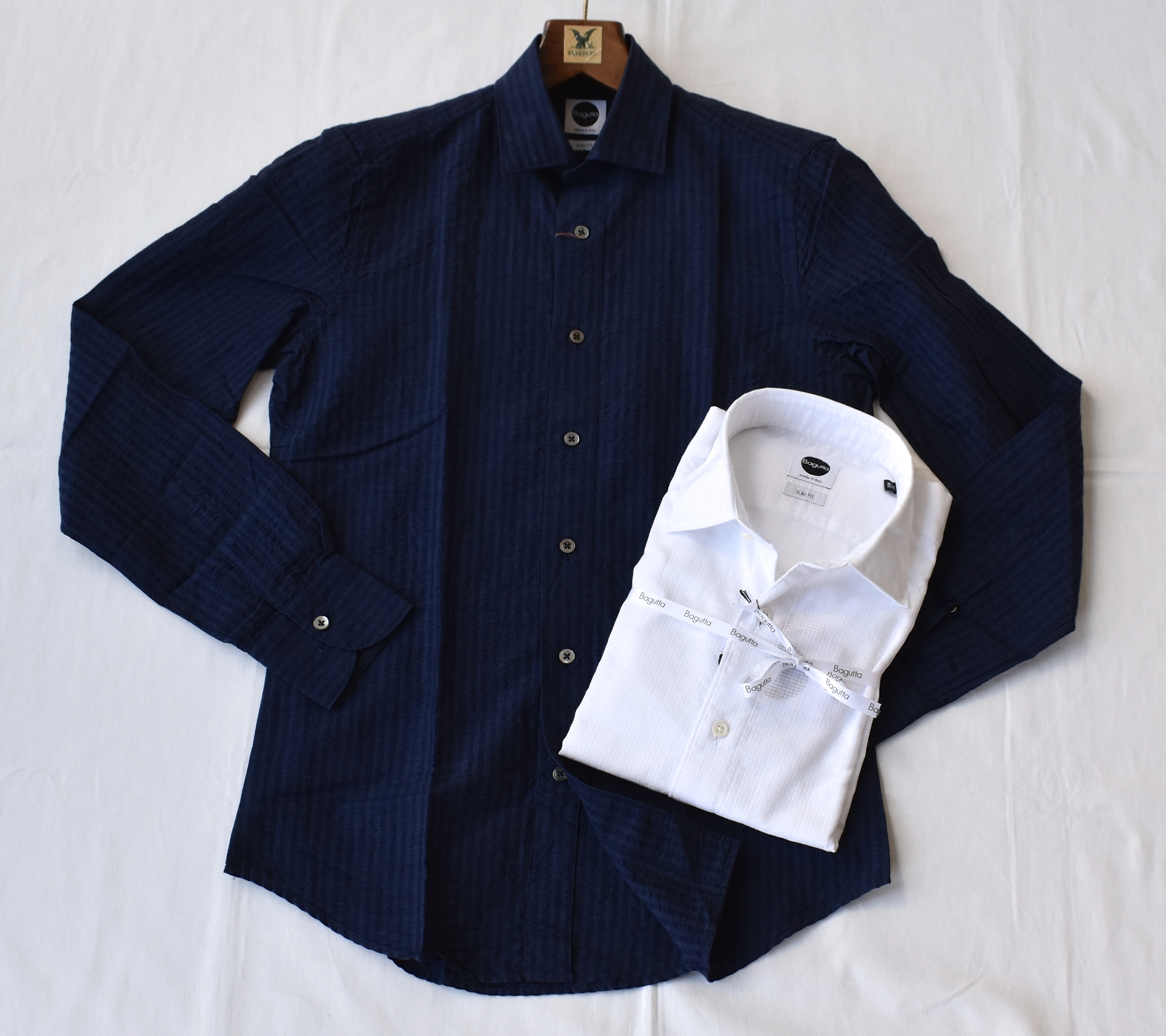 ラストです。ネイビー×インディゴのシアサッカーストライプは、価格こそ10,000円ではありませんが、クールな1枚に違いありません。また、うっすらと織り感のあるドビークロスは、さり気ない変化を狙うのにお勧めです。こちらは大特価の10,000円でご提案です。