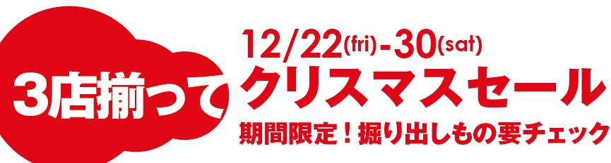 を開催させていただきます。グローリーガイ、カシェート、そして蔵庫/マガジーノ3店舗合同のクリスマスセールです。店内の一部の商品をお求め易い価格でご提供させていただきます。ショッピングサイト「SUGURU SHOP」には、明日21日木曜日の日暮れ時より先行スタートです。随時、価格の変更をしていきますので、お見逃しなく...です。