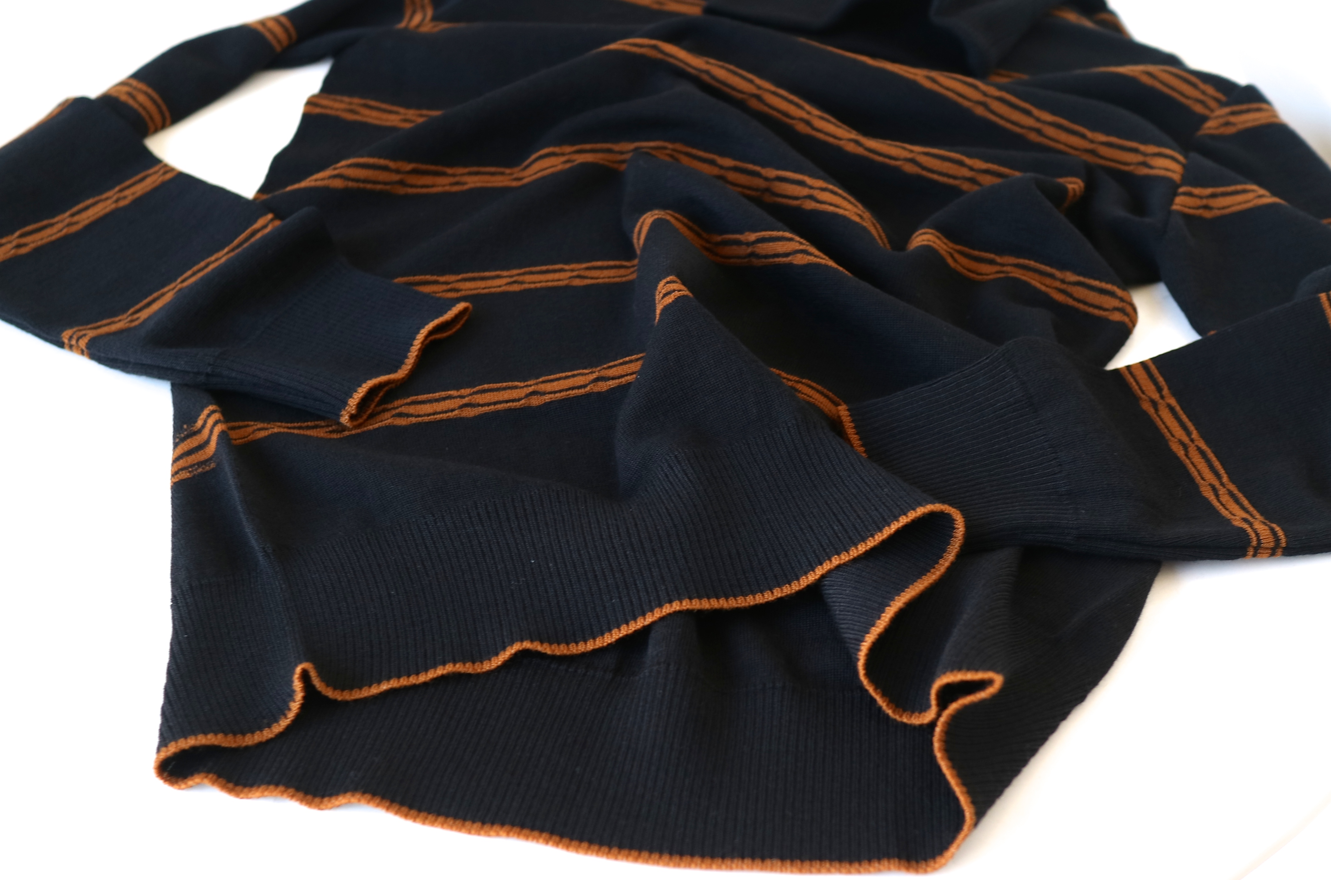 コレは!!と思ってセレクトした、変則のボーダー柄。編みによってボーダー部分に凹凸感が加えられ、良い塩梅とは正にこのこと・・と言わんばかりの変化付けが光る1枚です。