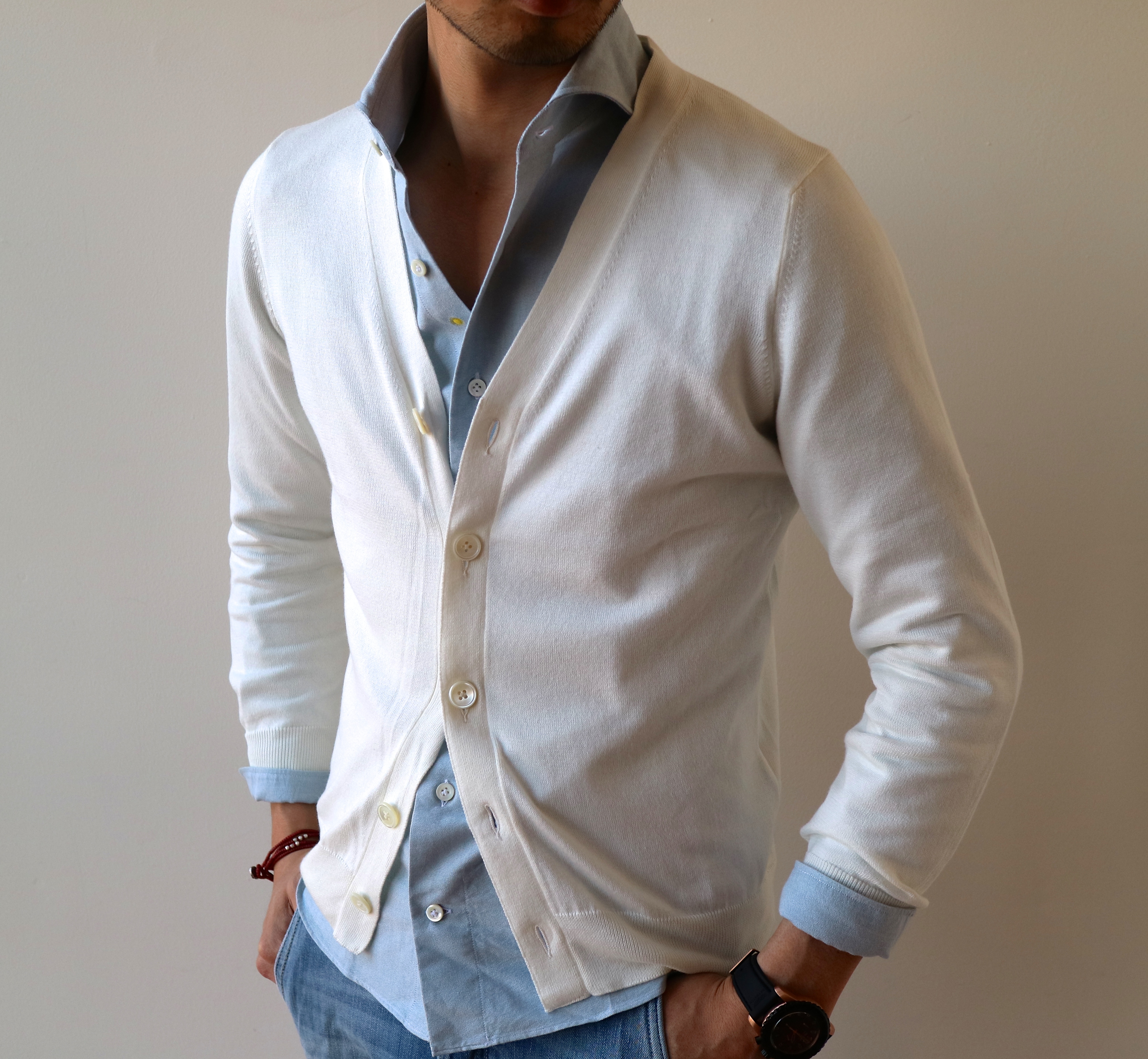 上質な編み地に加え、【ALTEA /アルテア】人気の秘訣であるのが、コンパクトなサイズ感。スリムな身幅に、短めの着丈と袖丈。日本人にマッチした、スリムなフィット感を演出してくれます。白蝶釦に、さり気なく季節感を感じます。