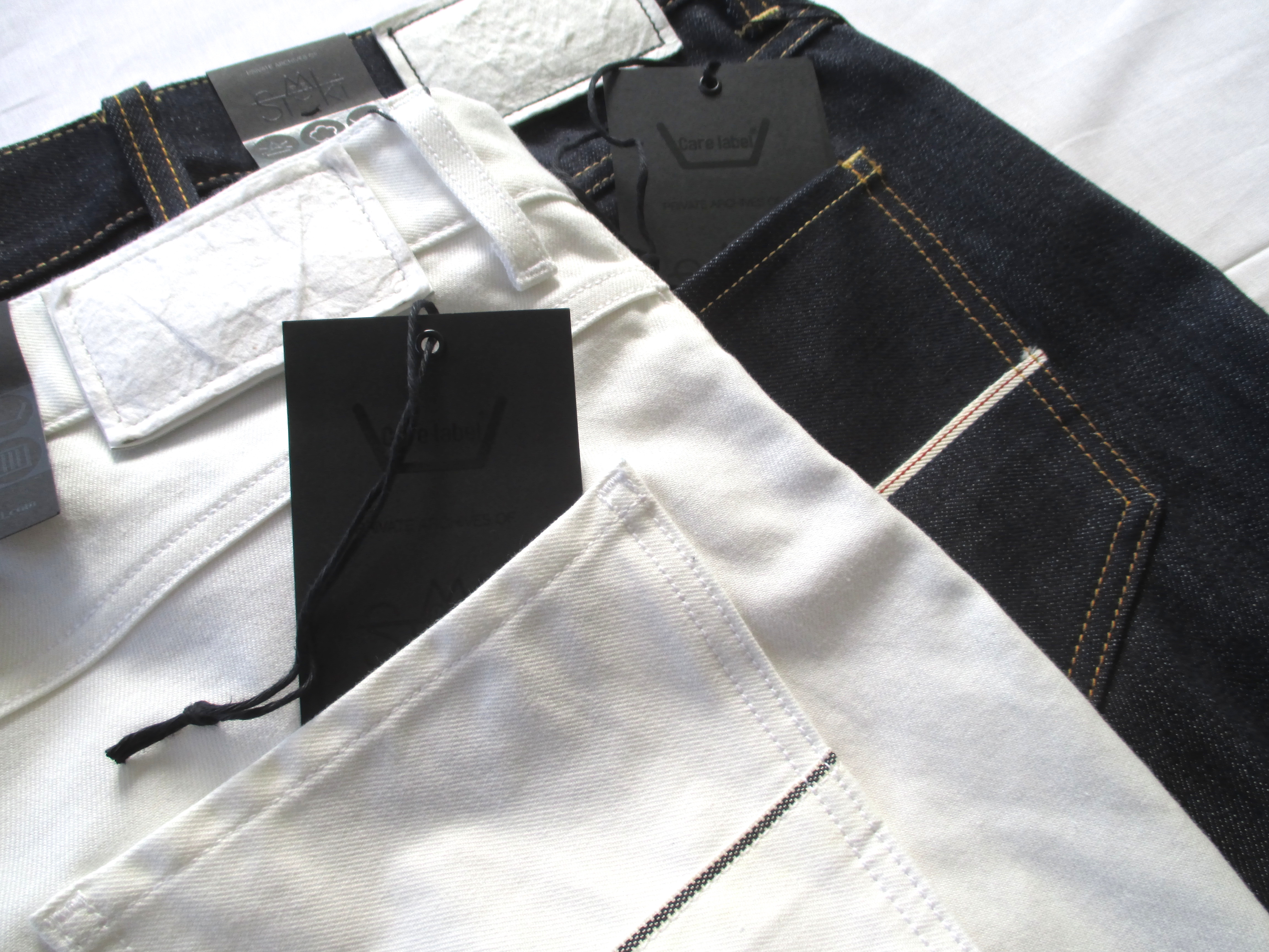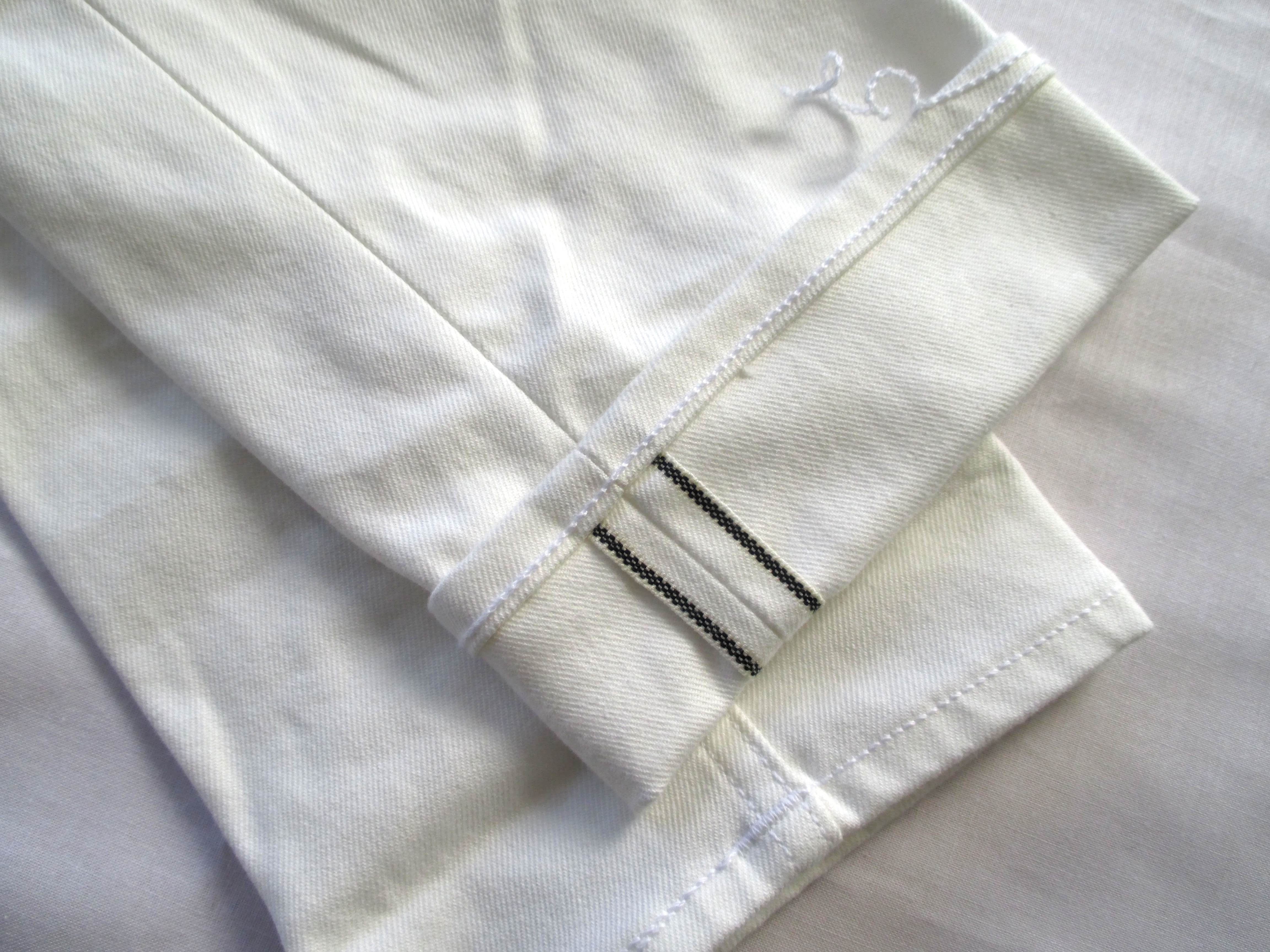 クラボウ社製の10オンス・ホワイトセルヴィッジデニムは、新開発の軽く、しなやかな糸を古い織機で織り上げた1本。ストレッチ入りです。