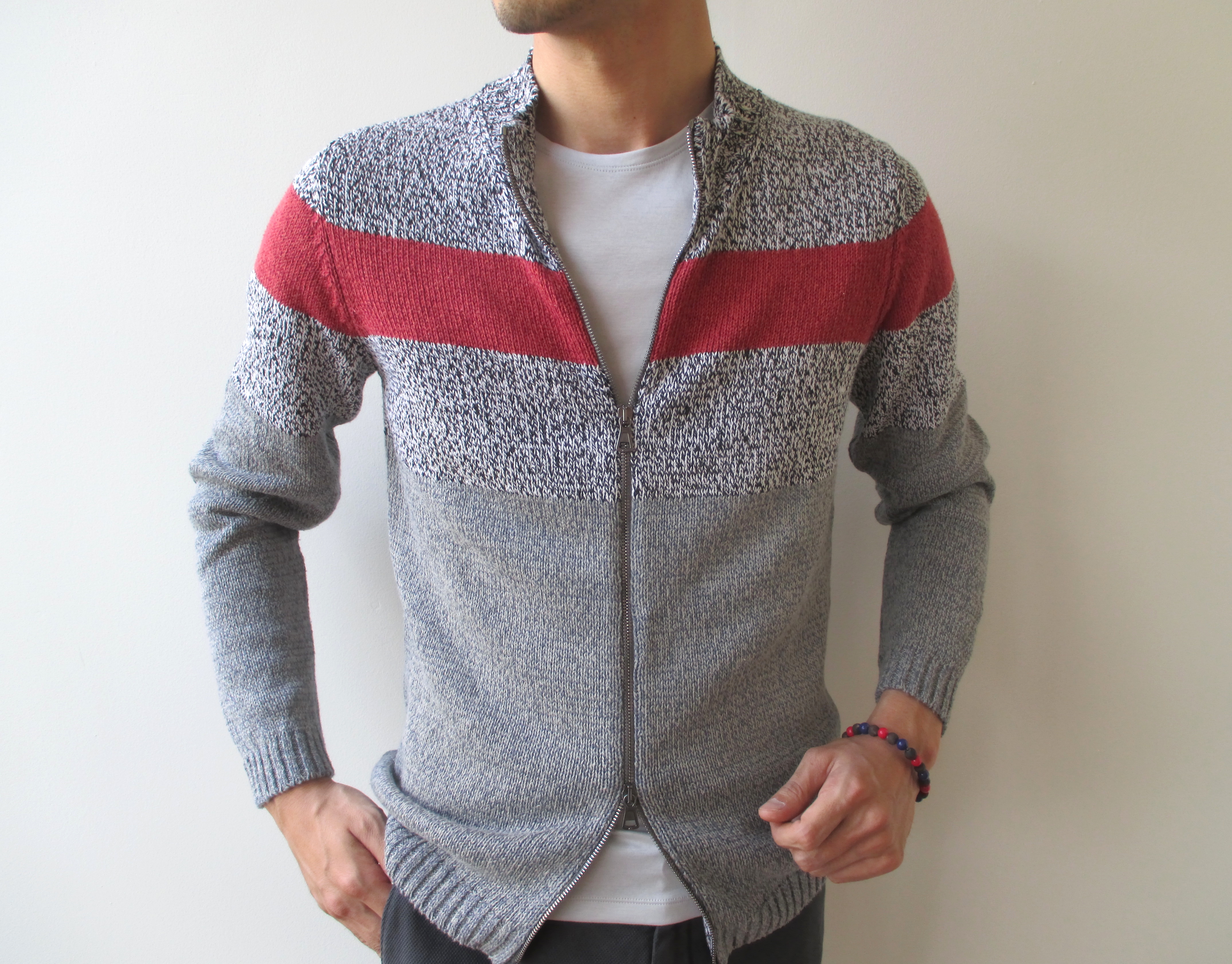 着脱がスムーズなフルジップ仕様で、脱いだり・着たりが多いこの時期には嬉しい仕様に。また、2色の糸が交ざり合って編み込まれたニットは、メランジ特有の奥行き感がもたらされ、魅力的です。