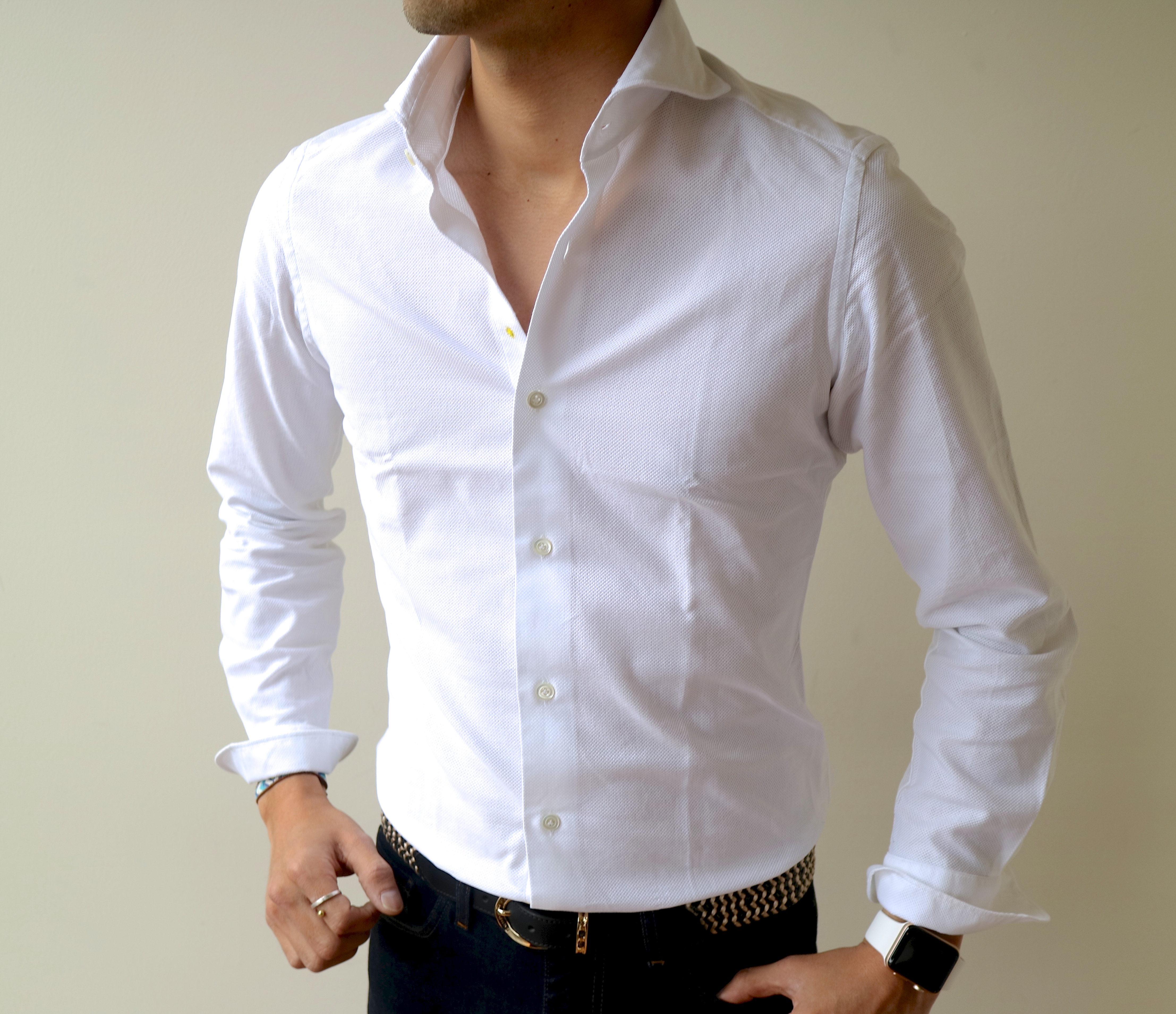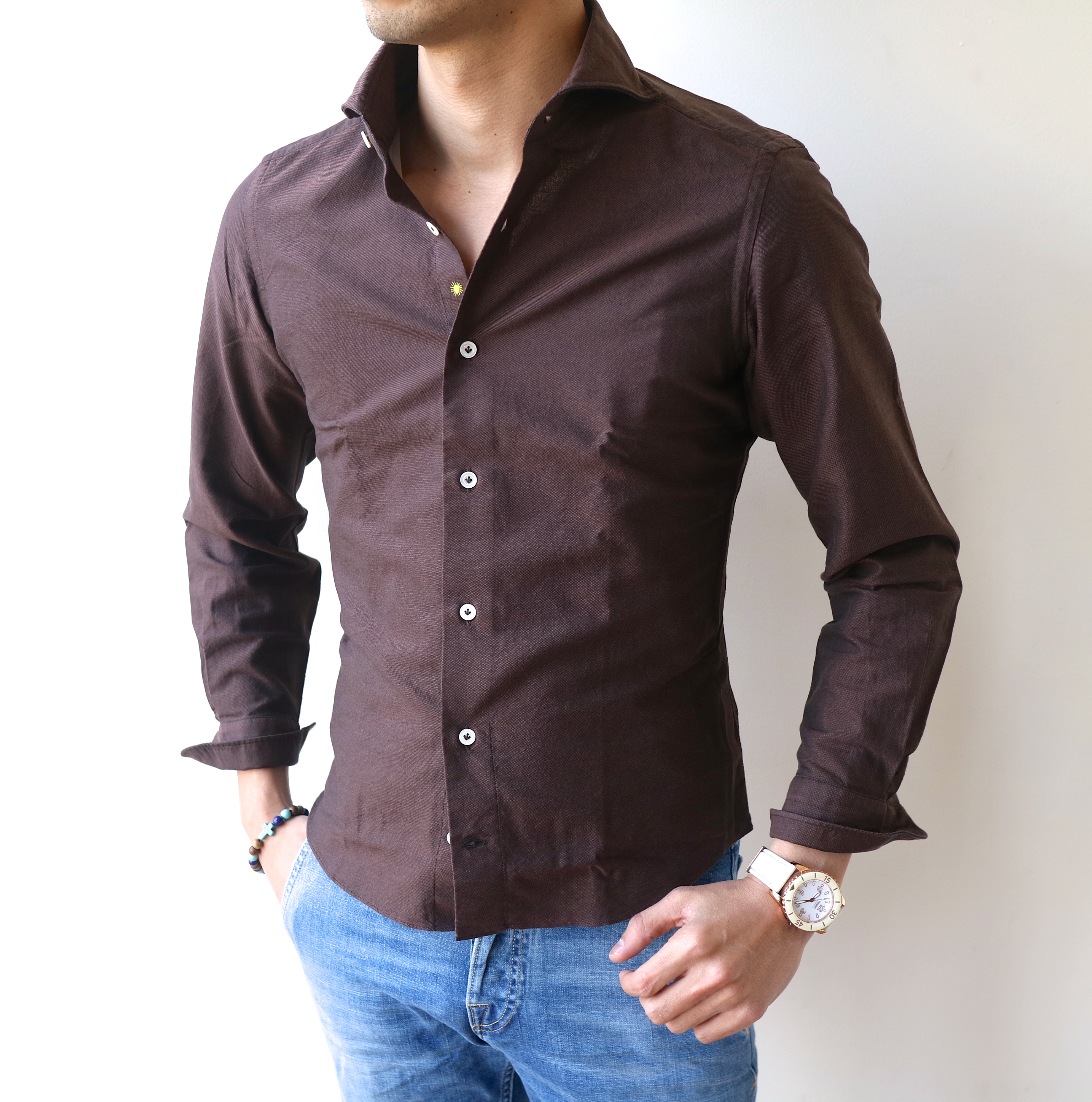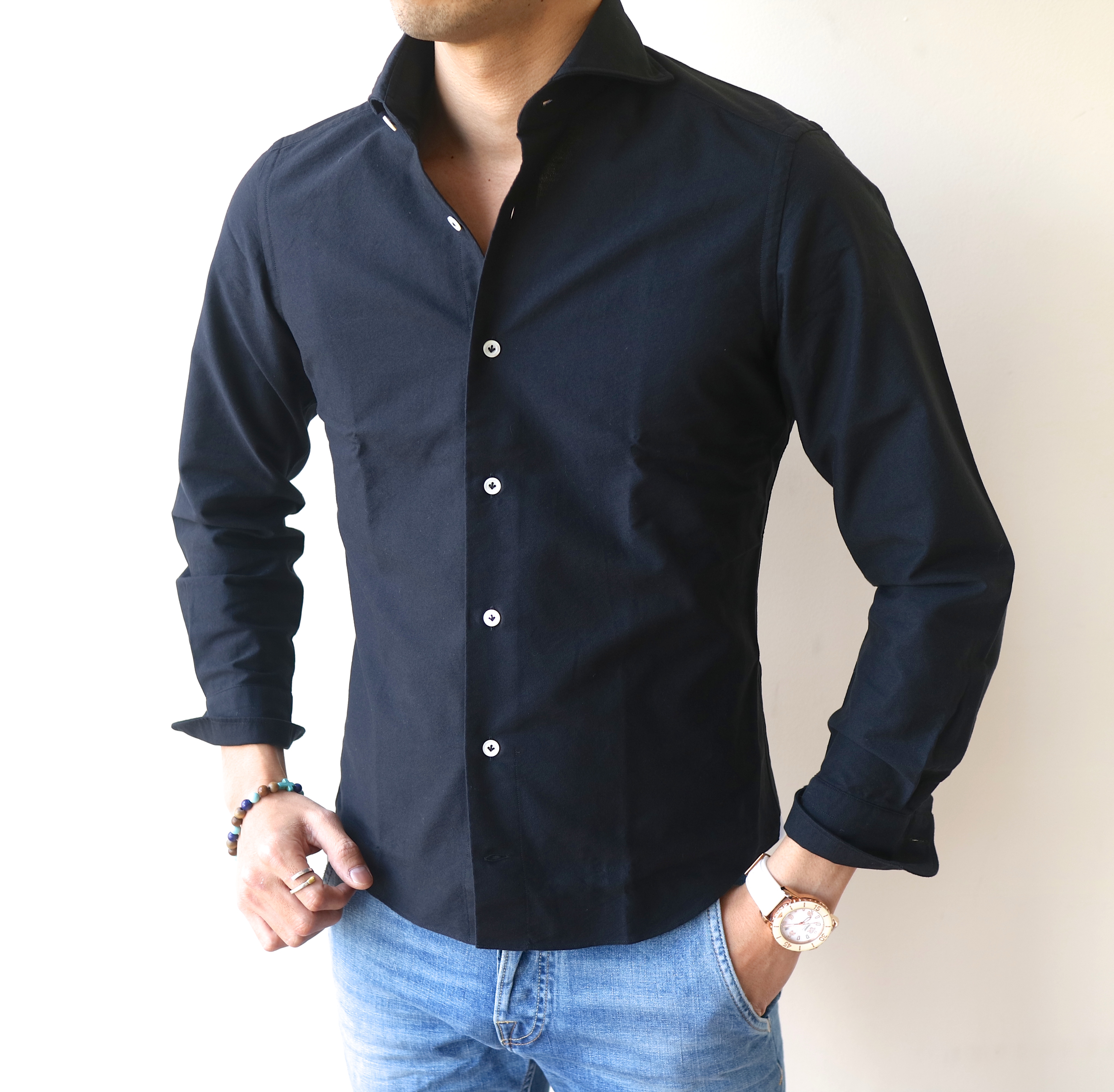 正直なところ、店頭には程よい自己愛を刺激するアイテムに溢れています。今日は、シャツです。大きめで、美しい開きを見せる襟。カットソーにはない、男性の上半身を綺麗に見せる雰囲気や色気。イタリアのシャツが脚光を浴びて久しいですが、やっぱり自己愛を刺激されます。【Giannetto/ジャンネット】、2月2日・3日・12日に引き続き、ご案内です。