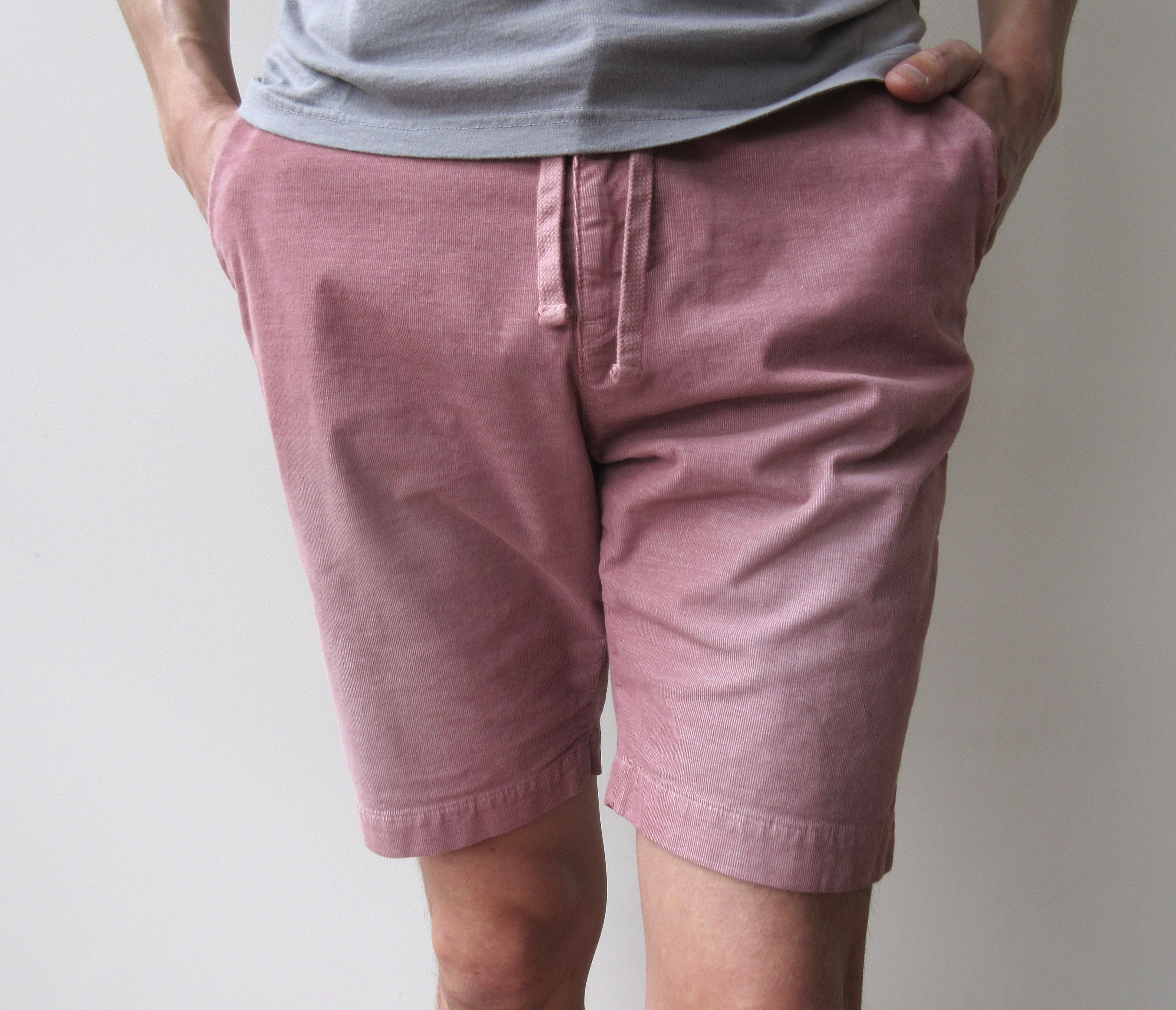 昨日ご案内した、サマーコーデュロイのショーツの着用写真を掲載します。昨日ご案内致しましたが、イタリアブランドのショーツと比べて股上が深めながら、その分股下が短い為、膝上の丈感はキープできています。股上が深い分、ウエスト回りにゆとりが生まれ、非常に楽な履き心地となっていますが、大人が履ける上品さも兼ね備えています。宜しければこのまま巻き戻し、昨日の置撮り写真と併せてご覧下さい。