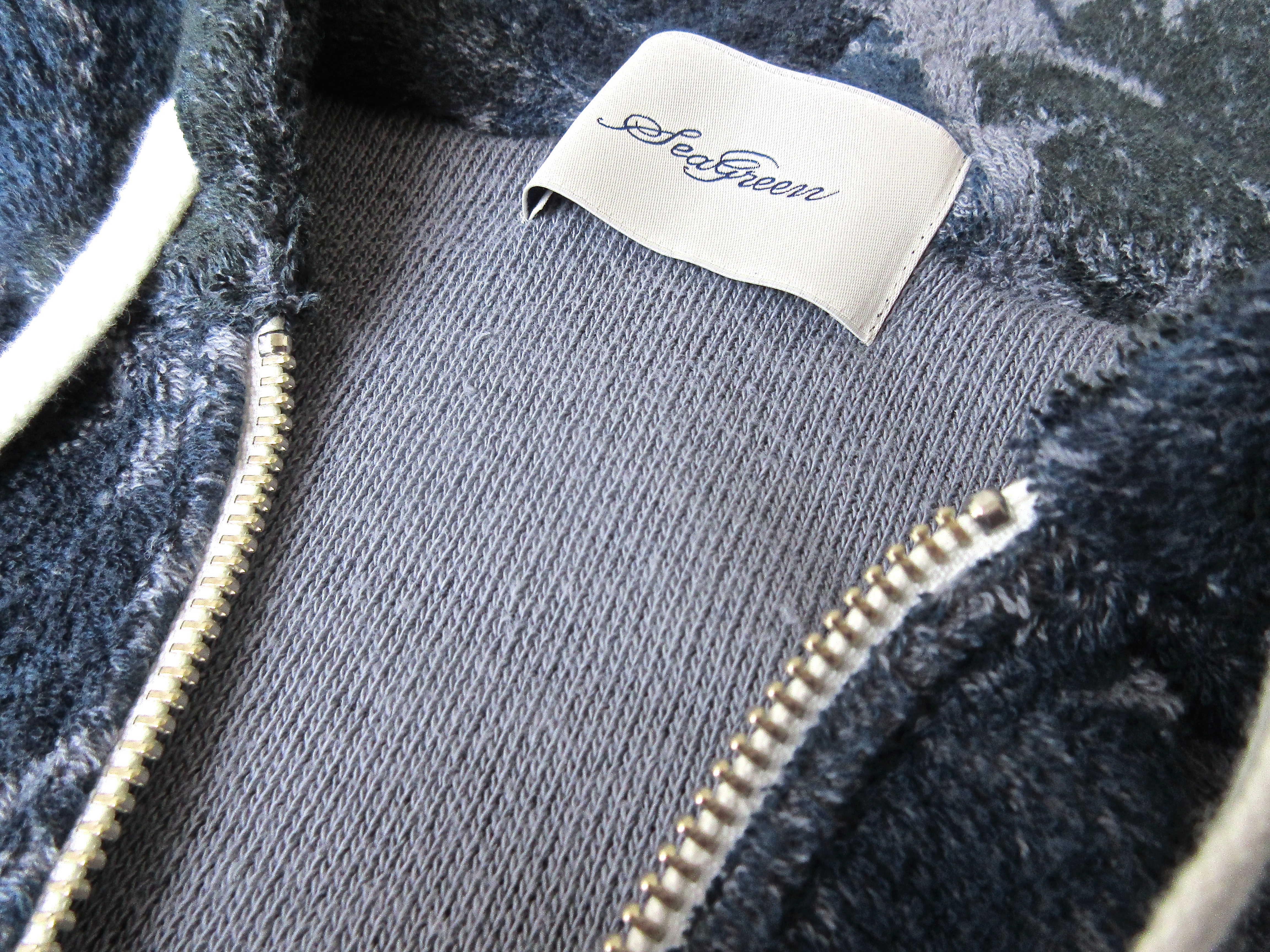 裏地は着古したような、ムラのある加工がなされ、ヴィンテージライクです。またフード部分の裏地はボタニカル柄の生地ですので、後ろ姿も絵になるよう配慮がなされています。