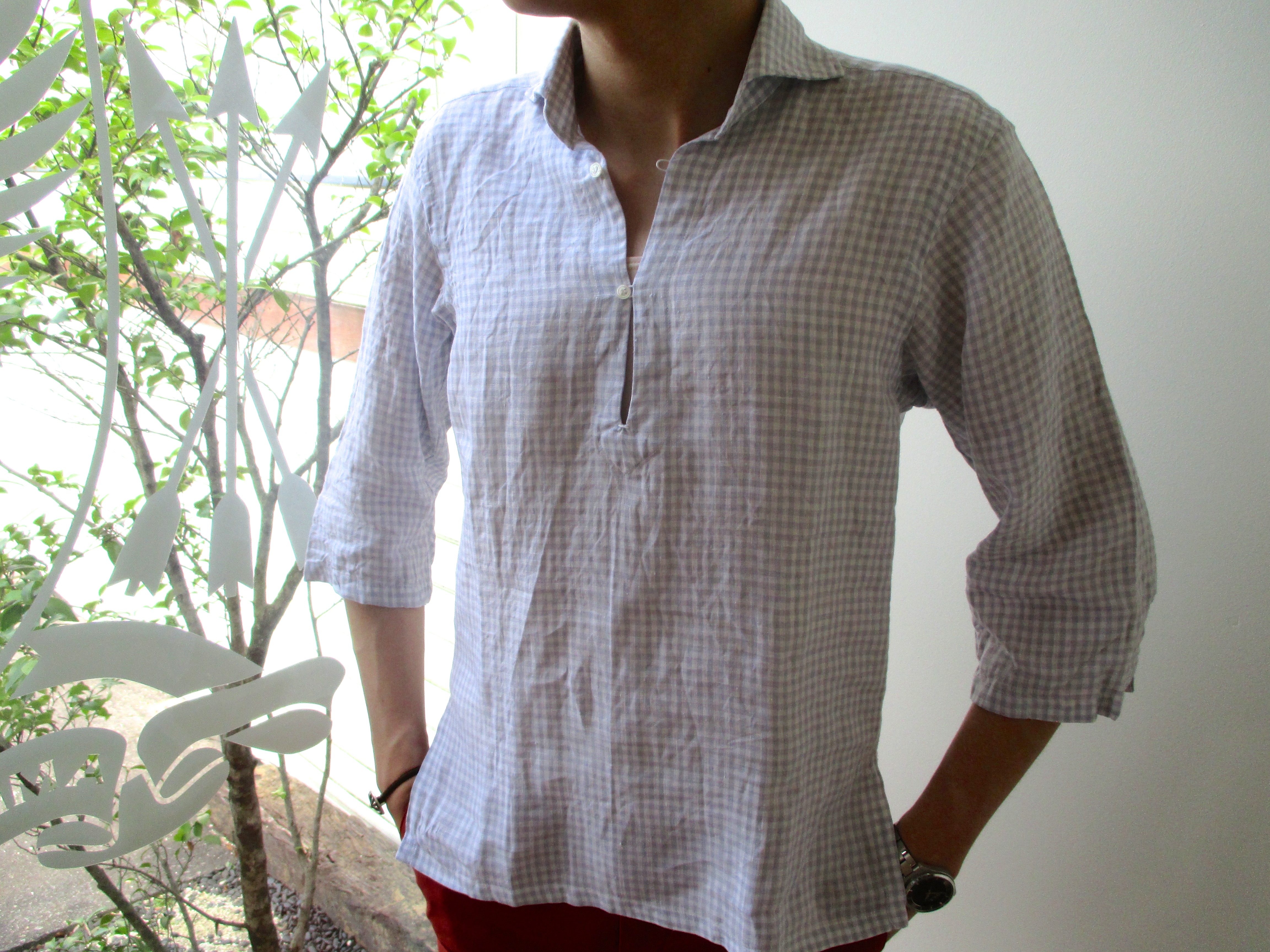 MODEL:リネンチェック柄カプリシャツ