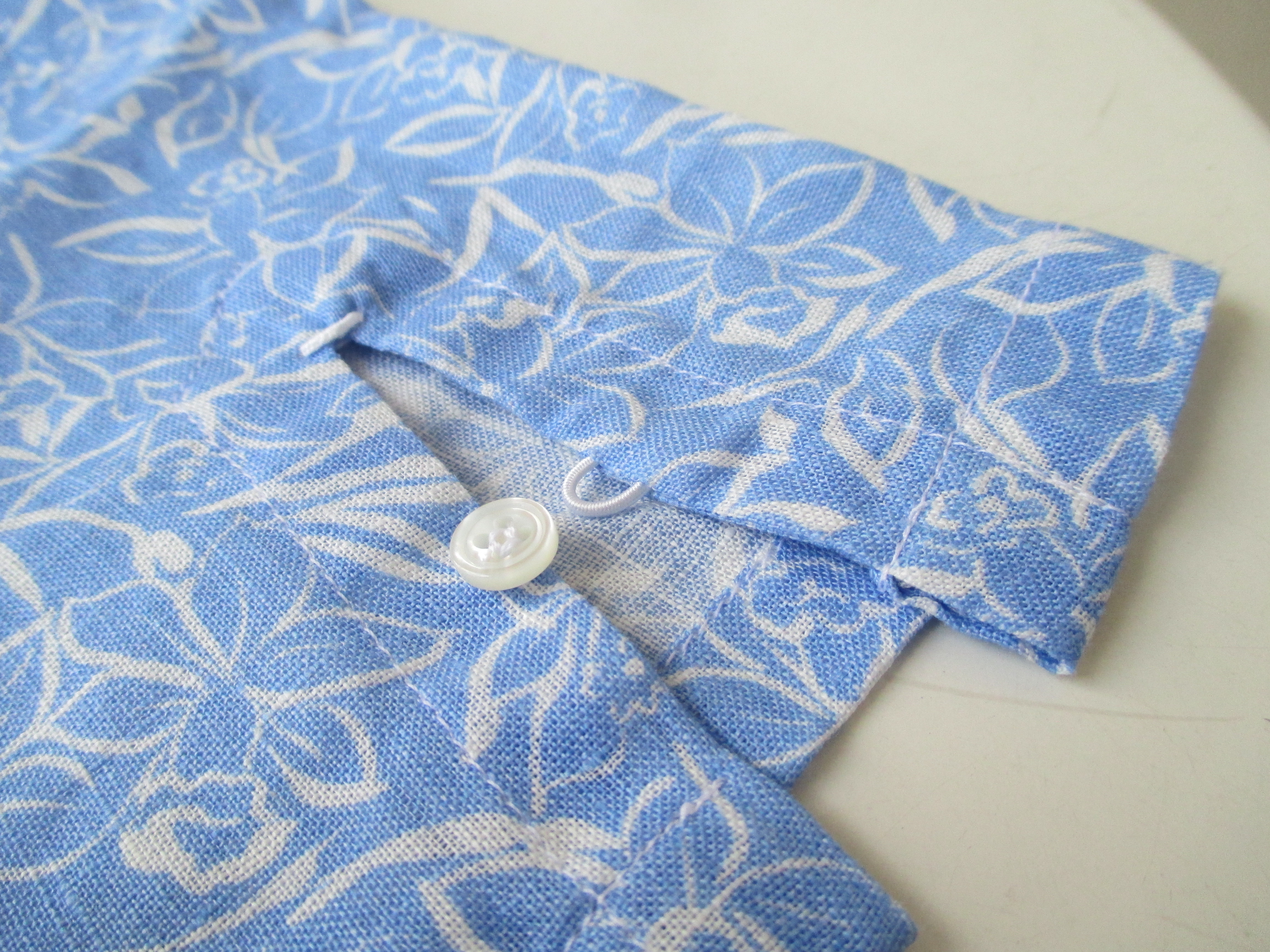 やや固めなリネンの生地感は、汗をかいても肌に張り付きにくく、重宝しそうです。また、ホワイトでプリントされた花柄は、主張が強過ぎず、巧いこと全体に散りばめられたかの様な印象です。袖口には釦が一つ付属(本日ご紹介のカプリシャツ全てに付属します。)し、表情を付け易い仕様になっています。