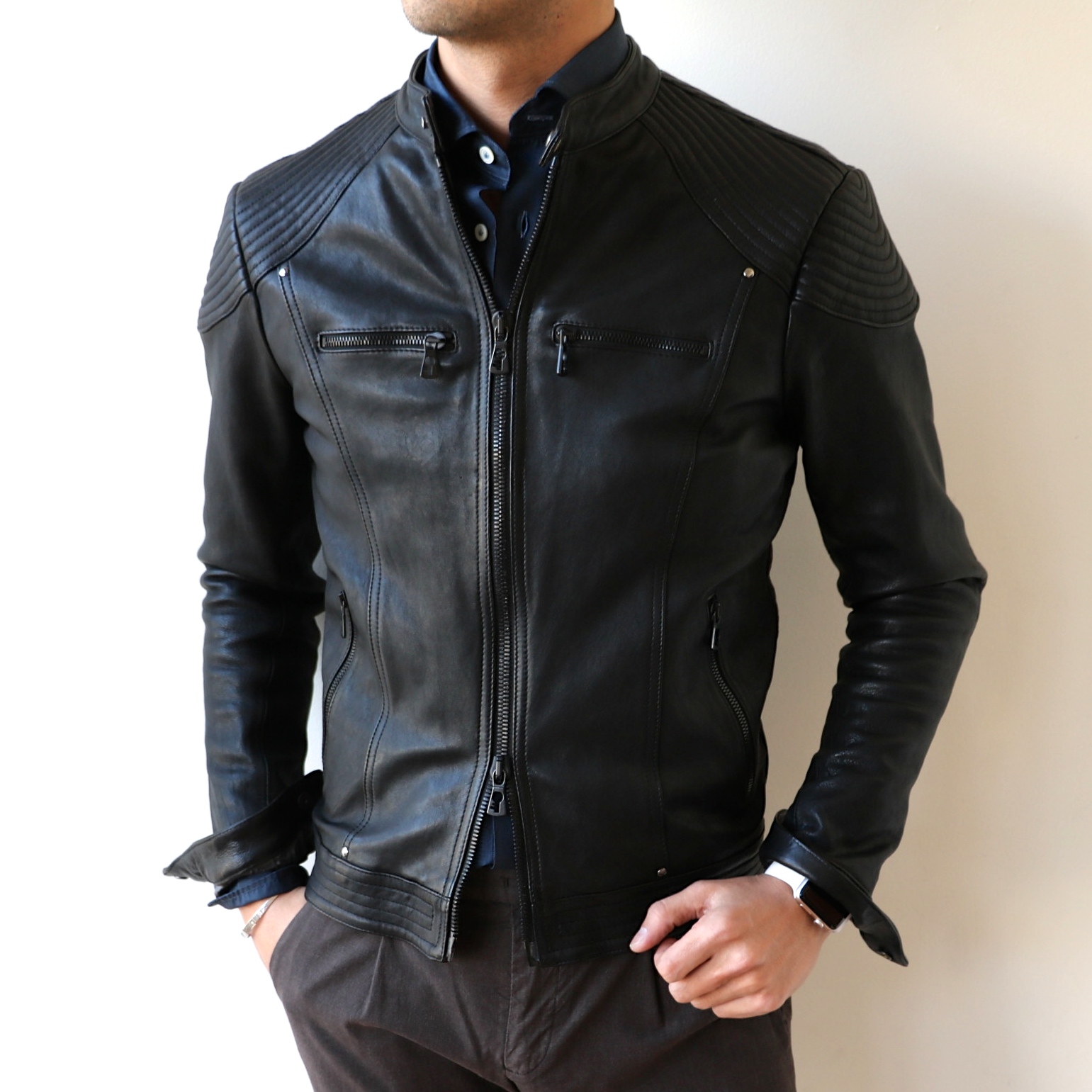 オマケです。折角なら...と羽織ったのは、イベントで展開中の【BENHEART FIRENZE/ベンハート フィレンツェ】のライダースジャケット。「HICH/ヒッチ」というモデルです。