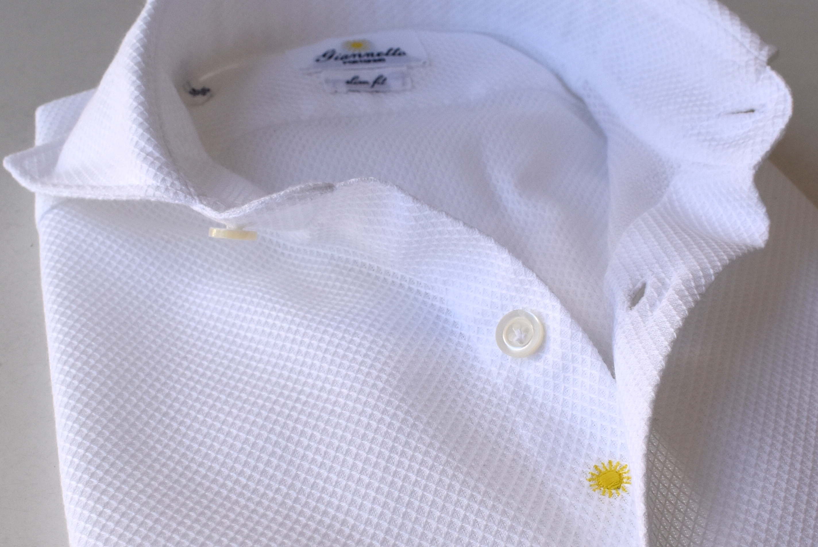 MODEL:「SLIM FIT」コットンメッシュ織りソリッドシャツ