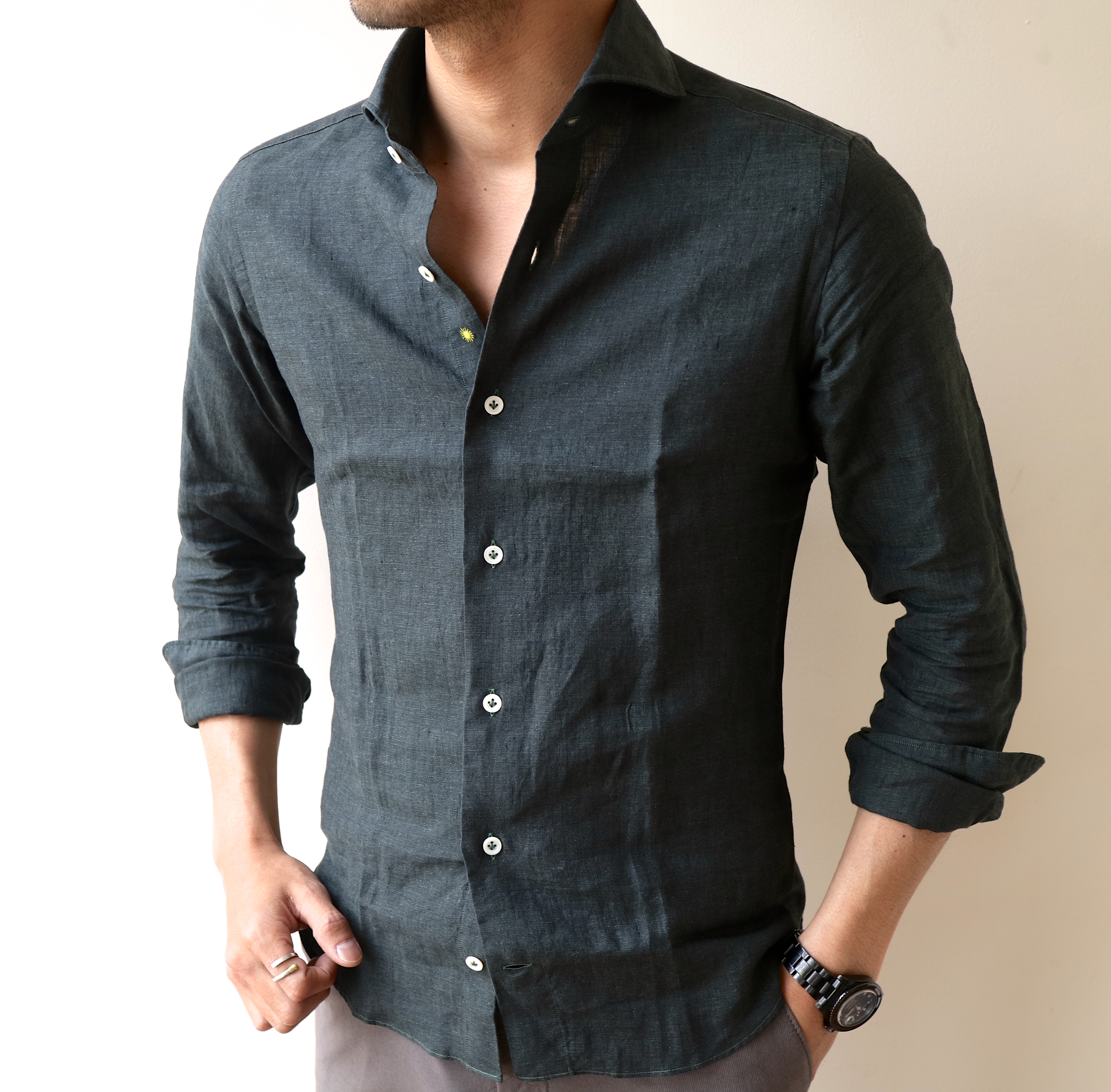 さて、本題です。GWより先の着こなしに目を向けた時、必ず必要となるのがリネンシャツ。ベーシックな無地を探していたところ、良い塩梅の生地と出逢うことが出来ました。リネンながら、ソフトな肌触りに惹かれます。