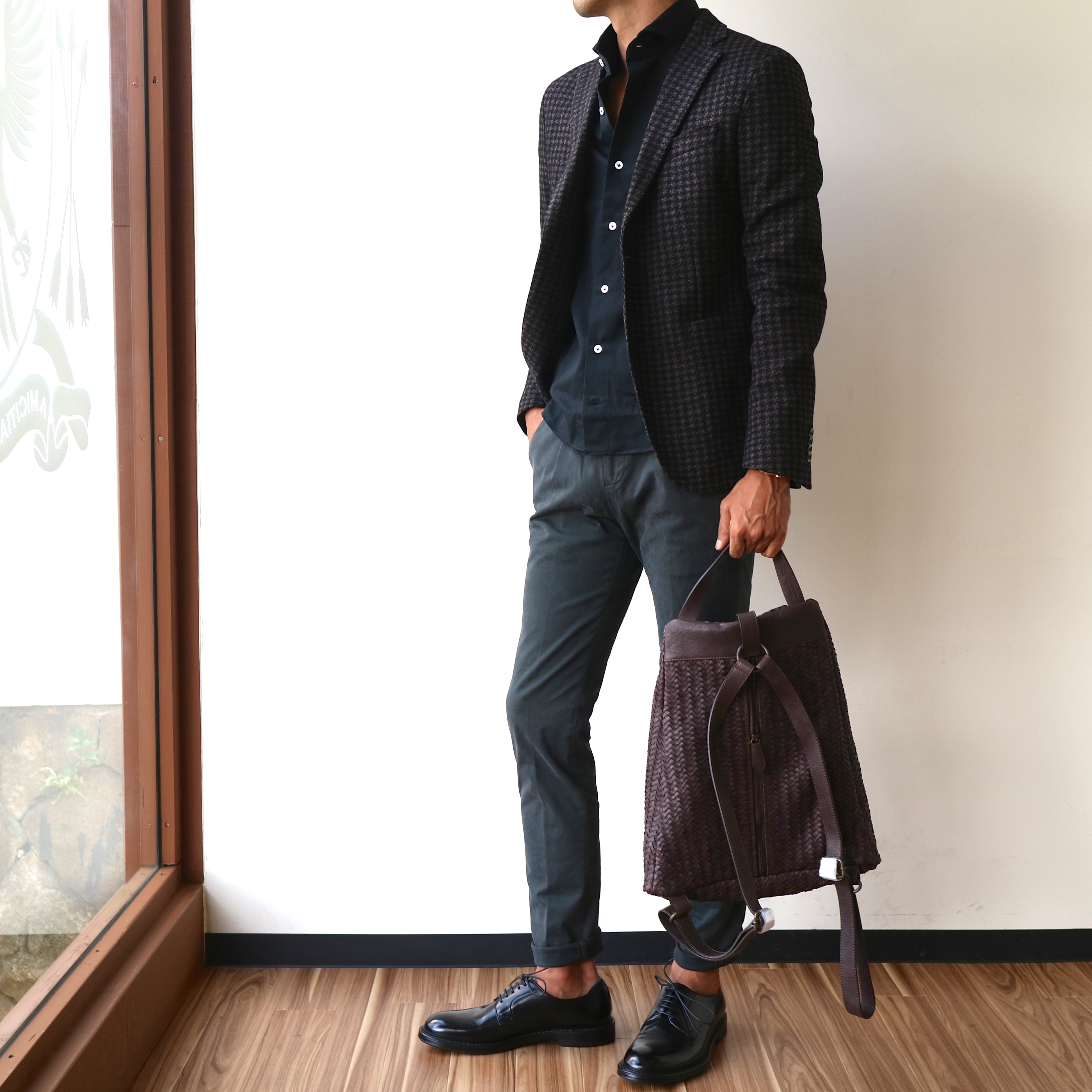 今年の秋冬は、どのアイテムから狙っていきますか?最後にコーディネートで1枚、ご覧ください。ジャケットーeleventy(後日ご紹介) シャツーGiannetto(ブラック) パンツーBRIGLIA 1949(後日ご紹介) 靴ーDOUCAL'S 鞄ーTIBERIO FERRETTI