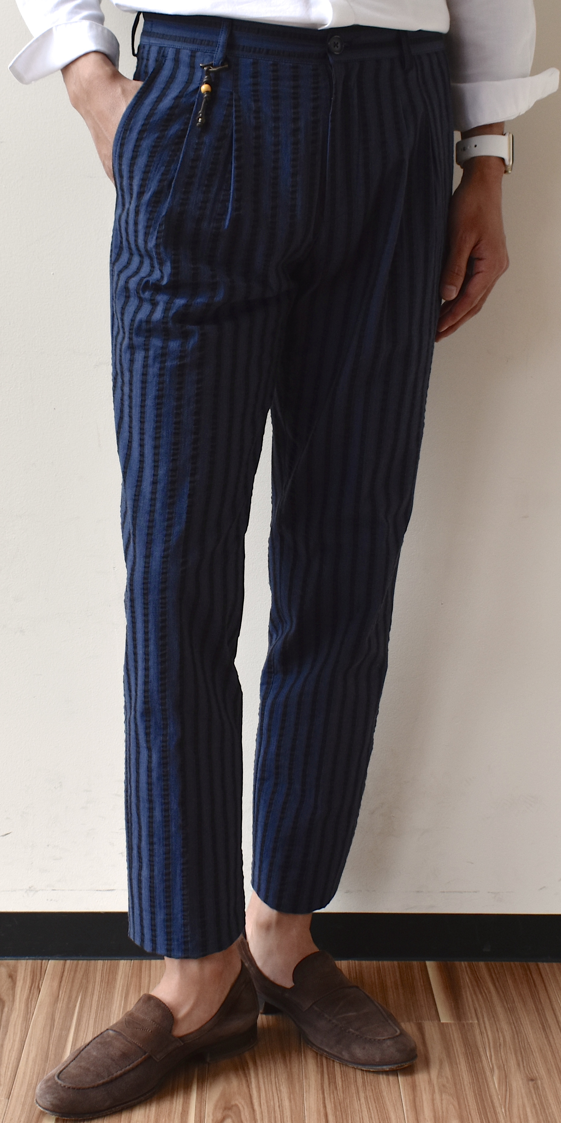 MODEL:「8G312PT」シアサッカー地 幅広ストライプ柄シャツ地パンツ
