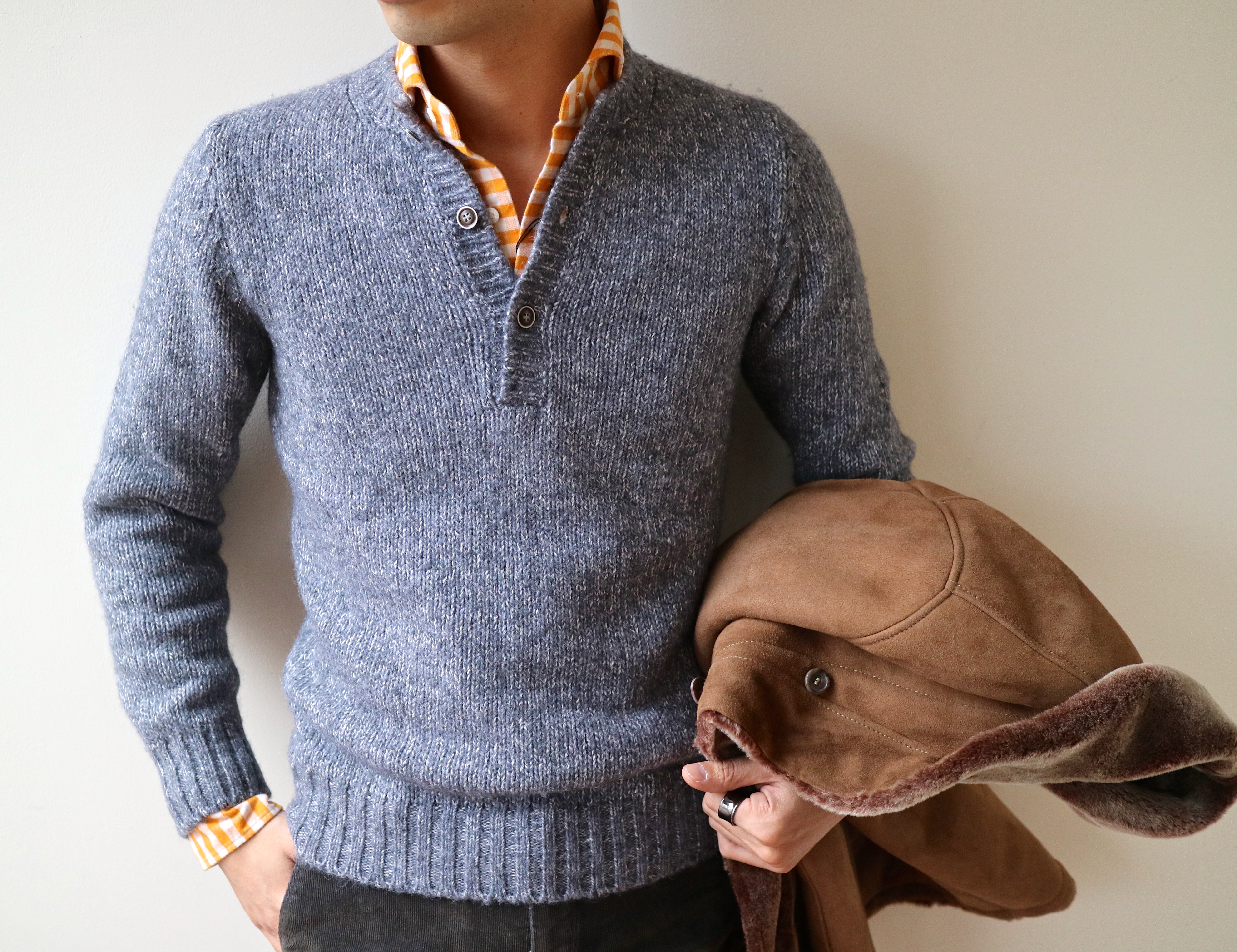 インには、【Gran Sasso /グラン サッソ】のヘンリーネックセーター&【BARBA /バルバ】のイエローのネル地ギンガムチェックシャツを着用。これからの時期、アウター着用時の襟元も、気を使っていきたい部分。重ね着し易いヘンリーネックに、温かみがあるとともに柔らかい発色のイエロー、ネル地による肌触りの良さ。こちらも魅力がぎゅっと詰まったアイテムです。