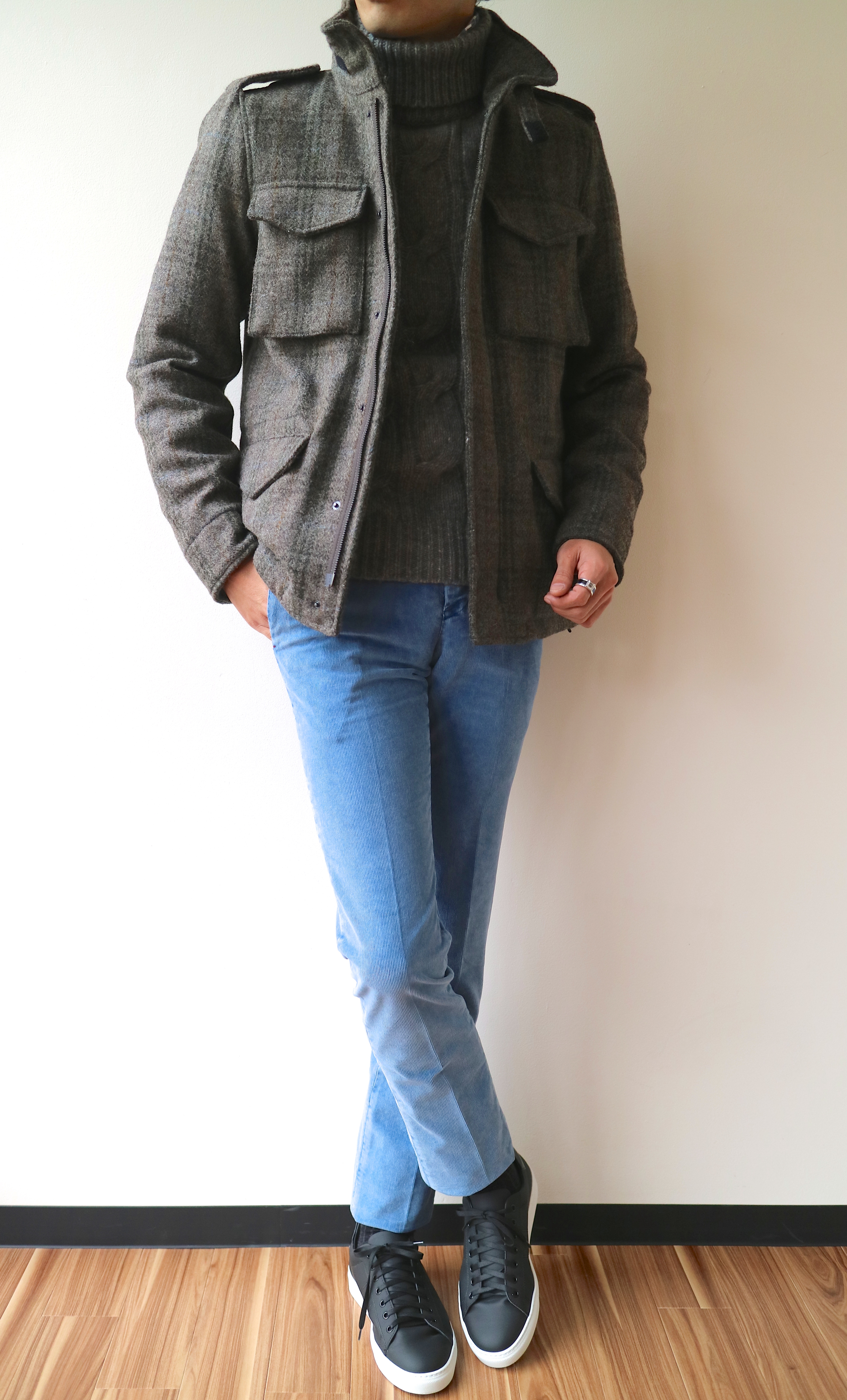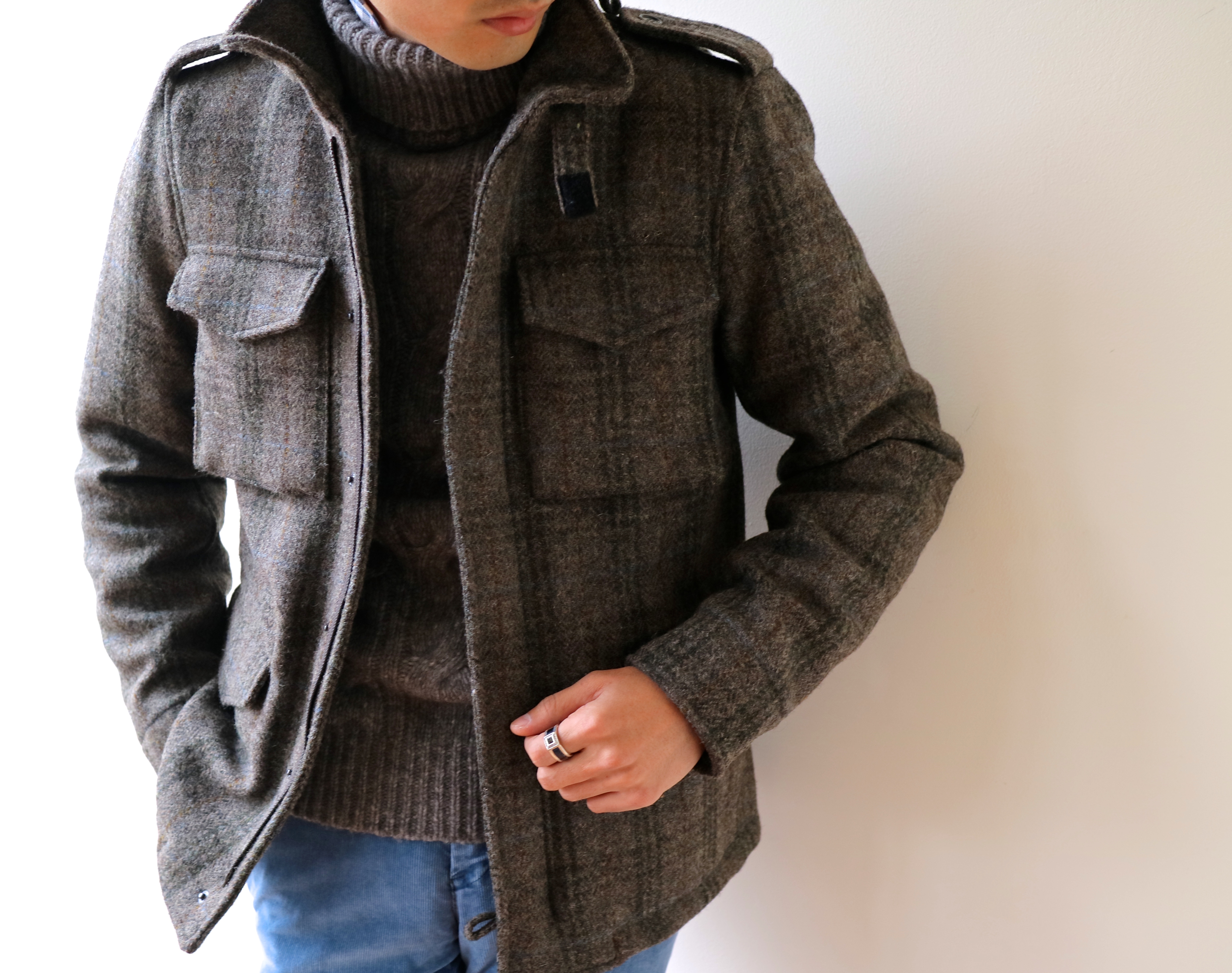 12月6日にご紹介したTAGLIATOREのハリス ツィードの生地を使用したジャケット。【ASPESI /アスペジ】の顔であるM-65型フィールドジャケットでも、同じくハリス ツィードの生地でご用意があります。
