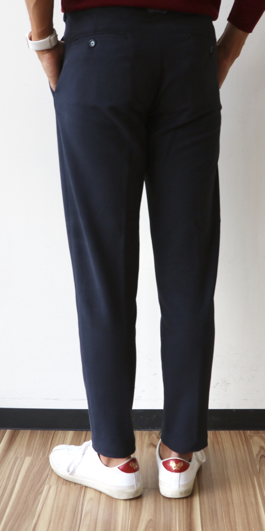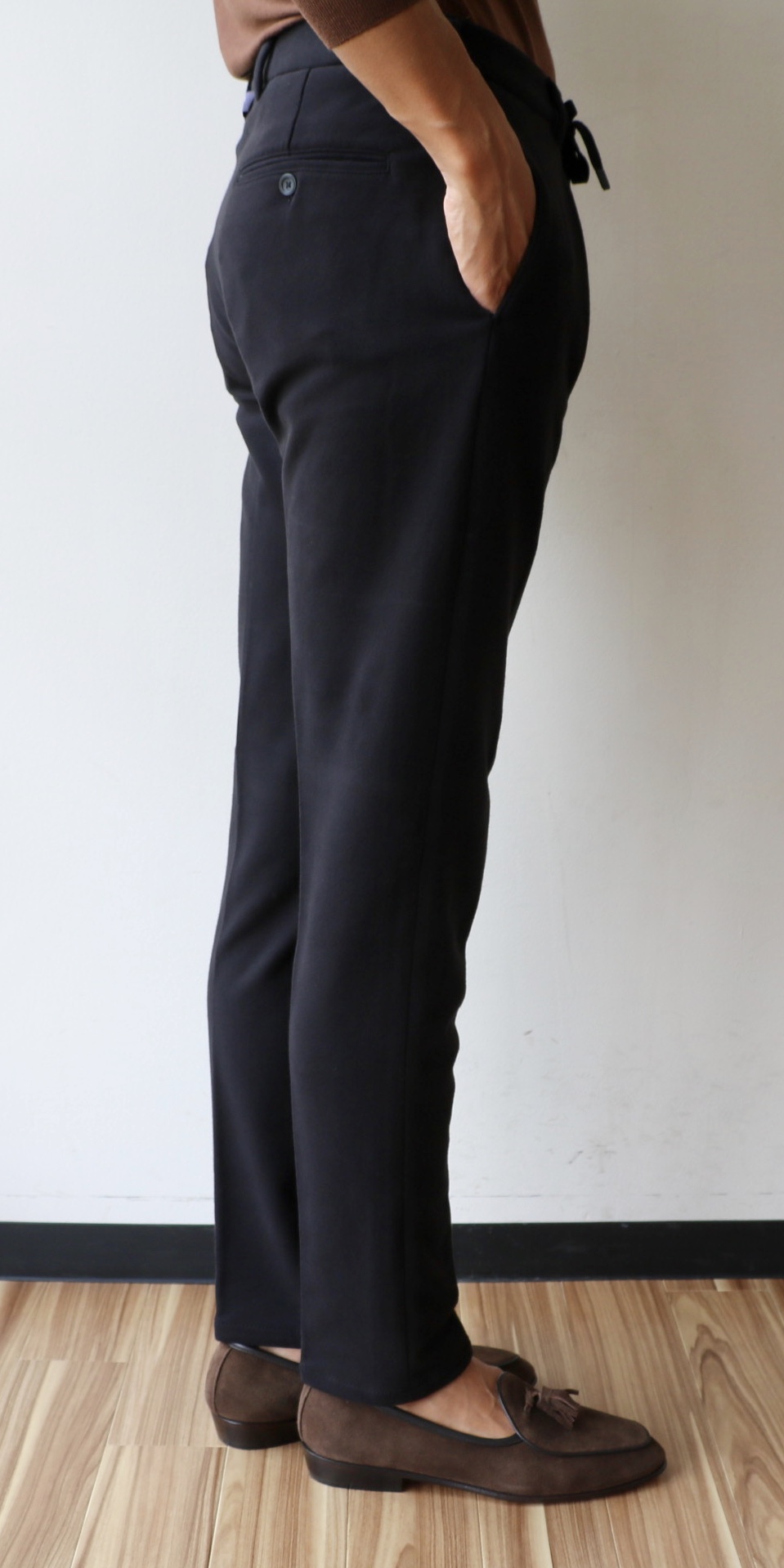 セットアップのパンツ、この生地はノープリーツのものをチョイスしています。