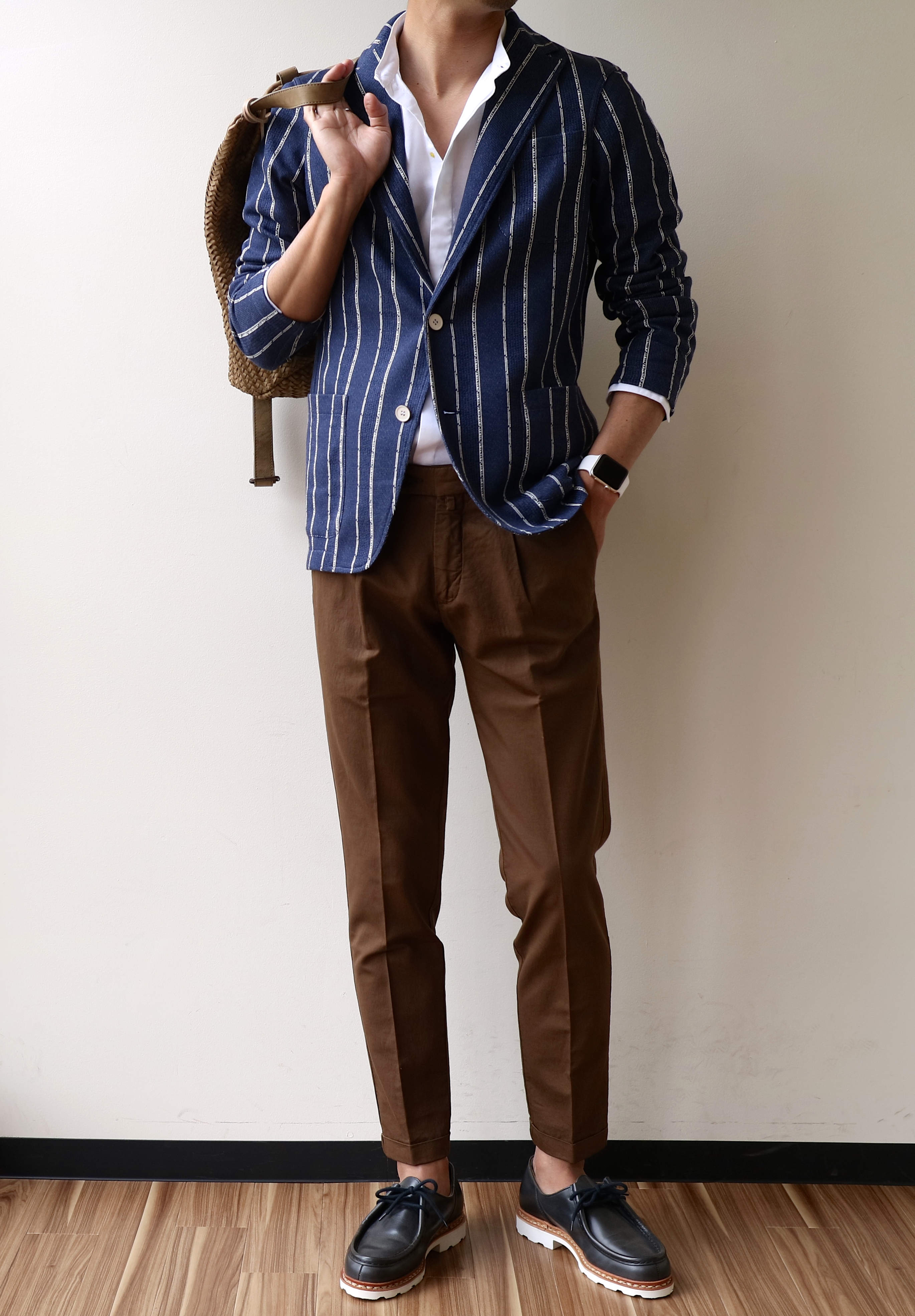 シャツーGiannetto パンツーMICHAEL COAL(未公開) 靴ーParaboot 鞄ーTIBERIO FERRETTI