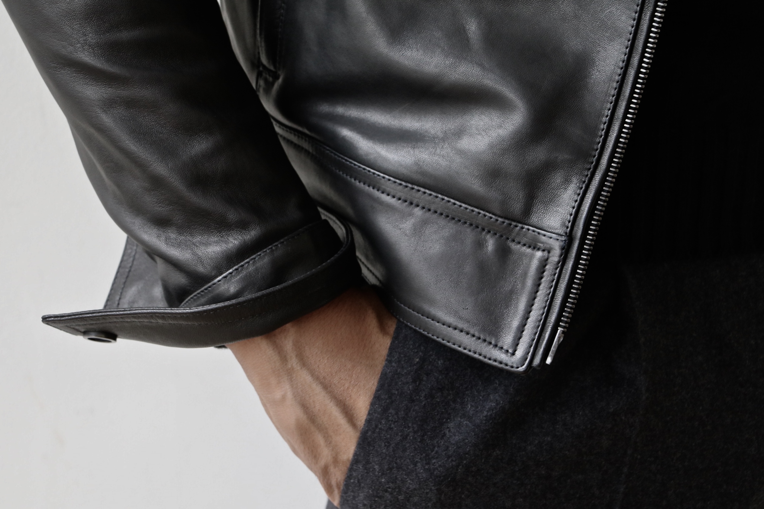モデル違いです。ユリをベースに、裏地に中綿を仕込んだ「ANDREA/アンドレア」。より秋冬シーズンに寄せたシングルライダースです。こちらのブラックは、滞りなく入荷です。