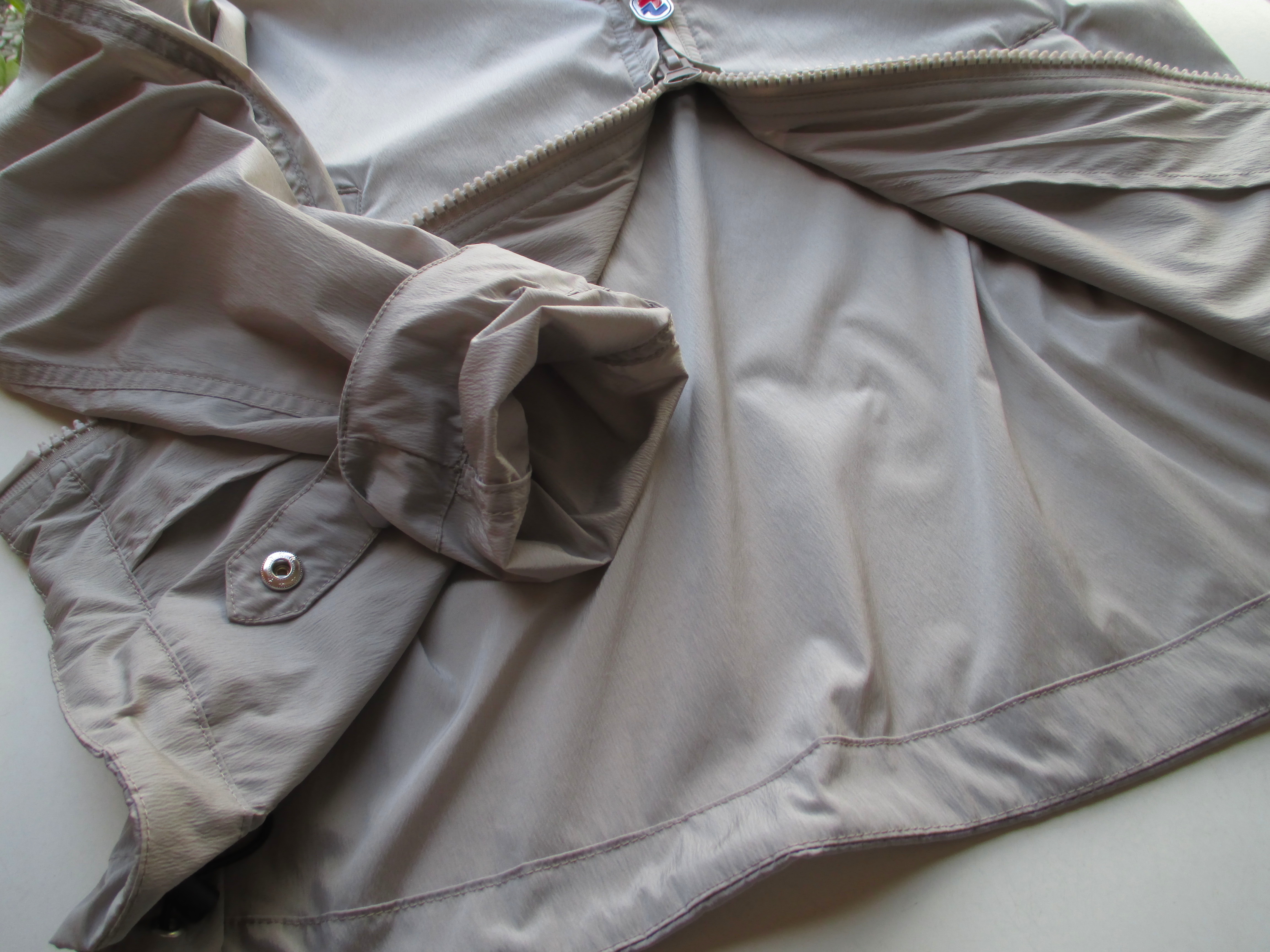 続いては、フード一体型のミドル丈ジャケット。素材は、定番のストレッチナイロン「ELLY」。適度にハリがあり、シャリッとした質感の生地。さり気ない高級感があります。前述のナイロンストレッチのロングコートと同じ生地となります。