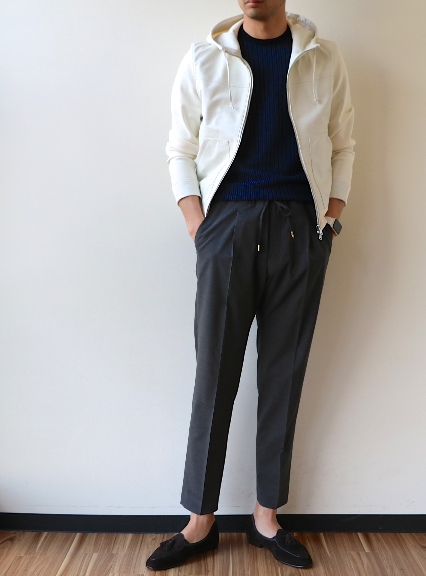 最初は、「ドローコード付き」。各ブランドで提案の増えているこのデザインは、スポーティ&リラックスの代名詞。マガジーノ的にそこに加えたいのが、エレガンスとちょいとしたモード感。パンツファクトリーの【BRIGLIA 1949/ブリリア】、ウール素材で良さげなものを発見です。
