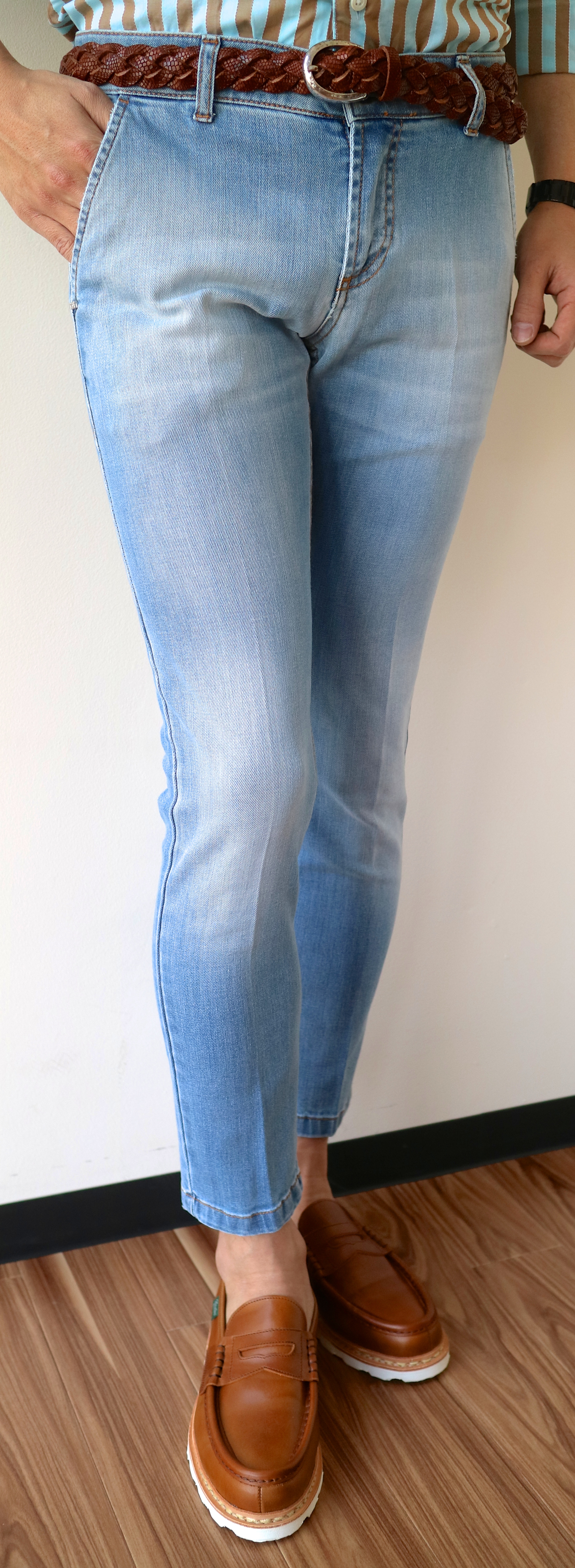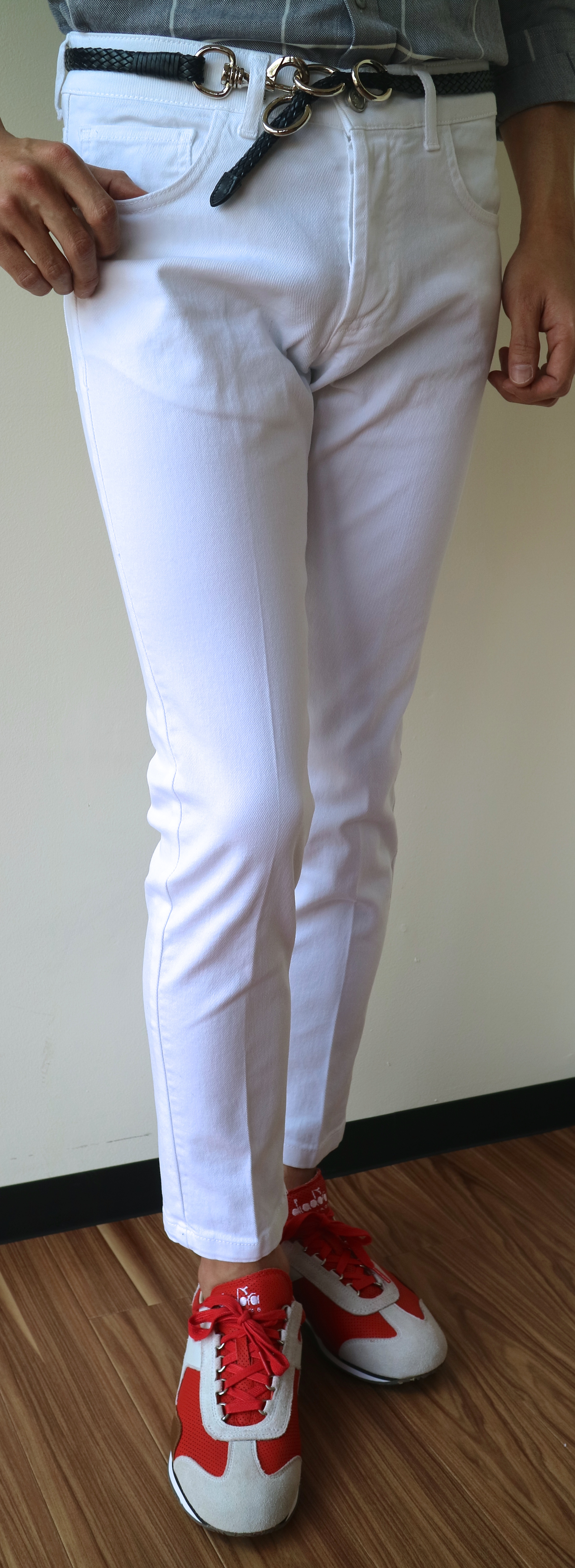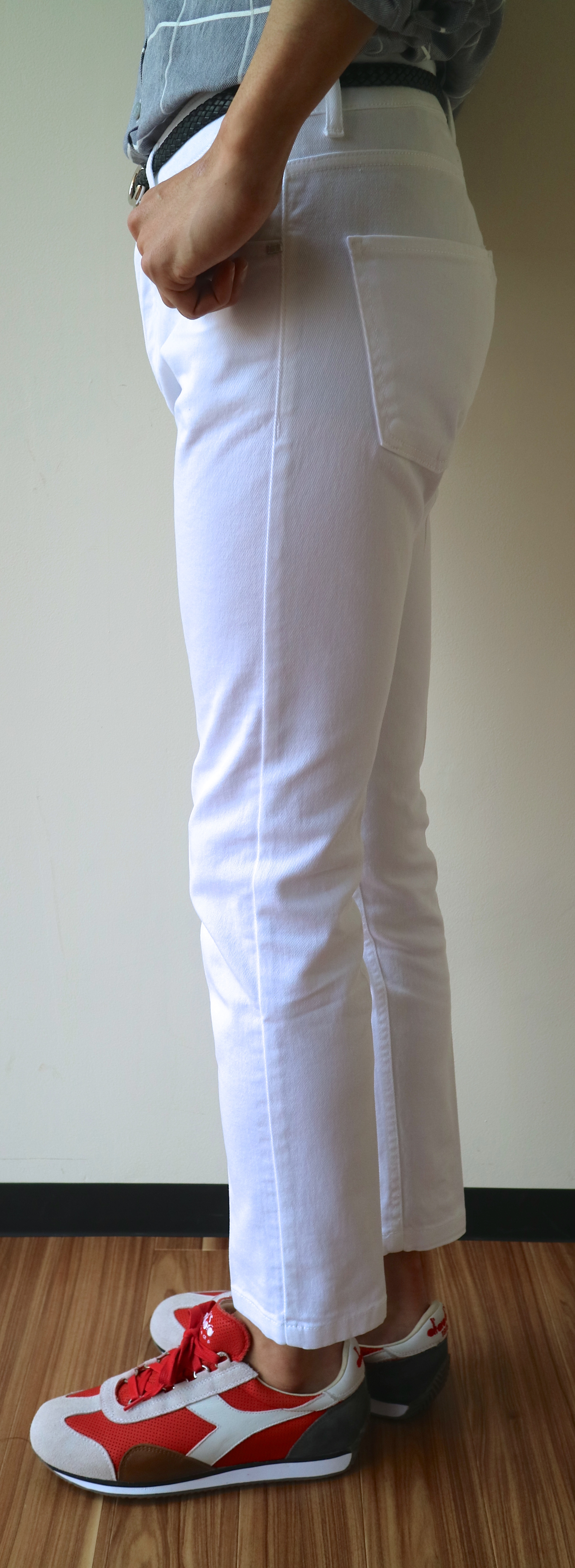 ...とくれば、ご紹介は、当然【entre amis /アントレ アミ】。今回からデニムラインへと突入ですが、まずは万能選手のホワイトデニムのお見えです。ホワイトデニムはもう持っているんだよな〜なんて方も、シルエットが違えば、立派な別物...なはず。逆三角形型のイタリア人っぽい下半身を演出してくれる1本です。