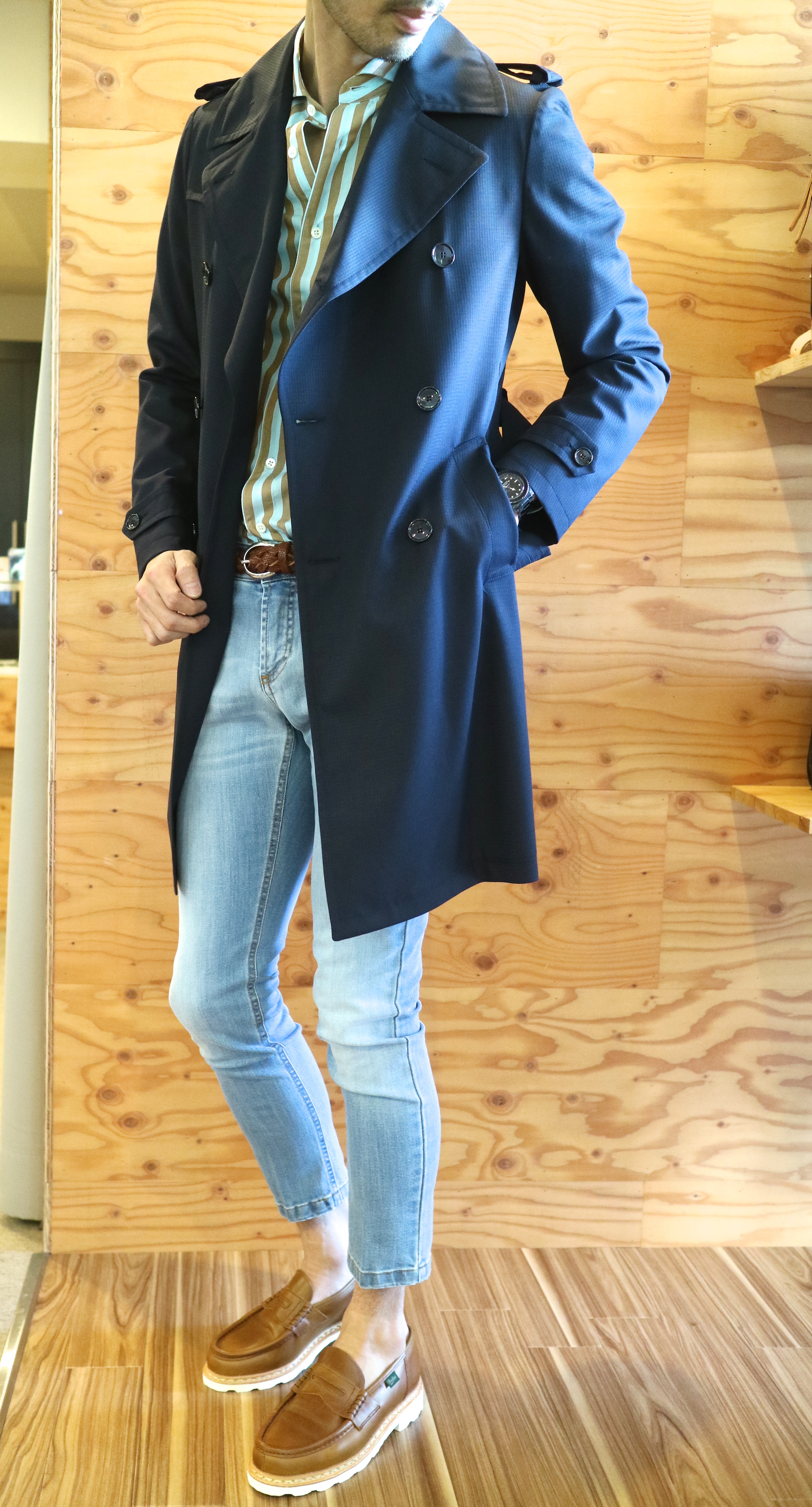 昨日のグローリーガイブログにて案内のあった【TAGLIATORE /タリアトーレ】のコート類。間違いなく漢を上げてくれる、春仕様のコート。これは羽織らずにはいられない!!...ということで、アミのデニムに合わせて撮影。特有のテイパードシルエットが、合わせたアイテムをキッチリ引き立ててくれます。