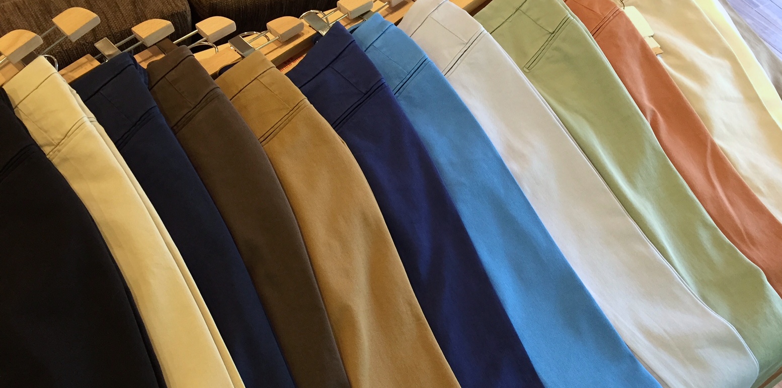 ベーシックなコットンのストレッチパンツ。これだけ揃いました。ただ、サイズがバラバラになるので、その点はご容赦下さい。その他には、小紋系やジャカード系、サマーウールのタイプまで、豊富なバリエーションで皆様をお迎えすることが出来そうです。