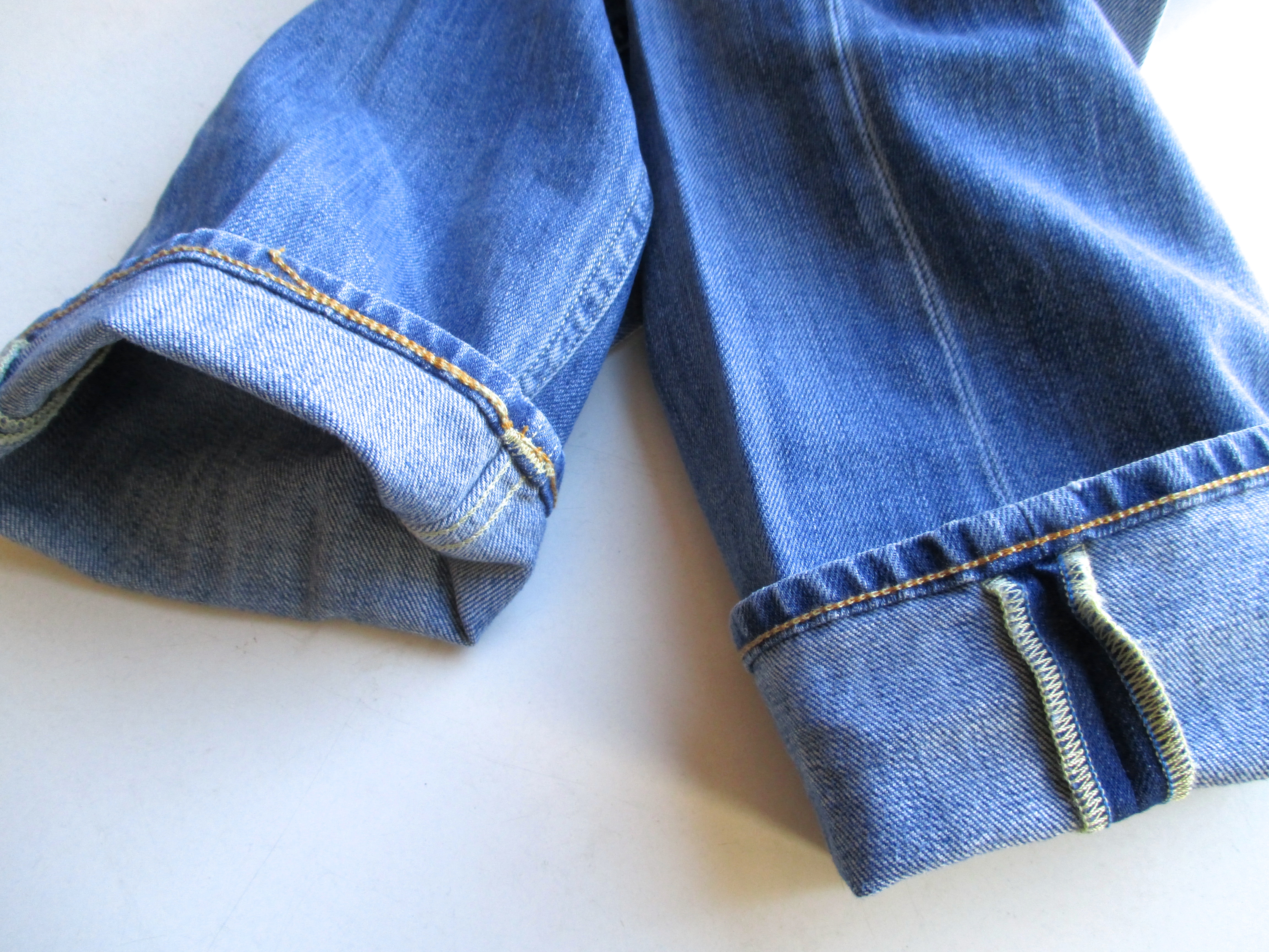 こだわりの細かい作り込みは、裾部分にも行き届いております。普通のジーンズ(タタキ)仕上げも良いでしょうが、オリジナルと同じ様にチェーンステッチ仕上げでお直しされることをお勧めします。