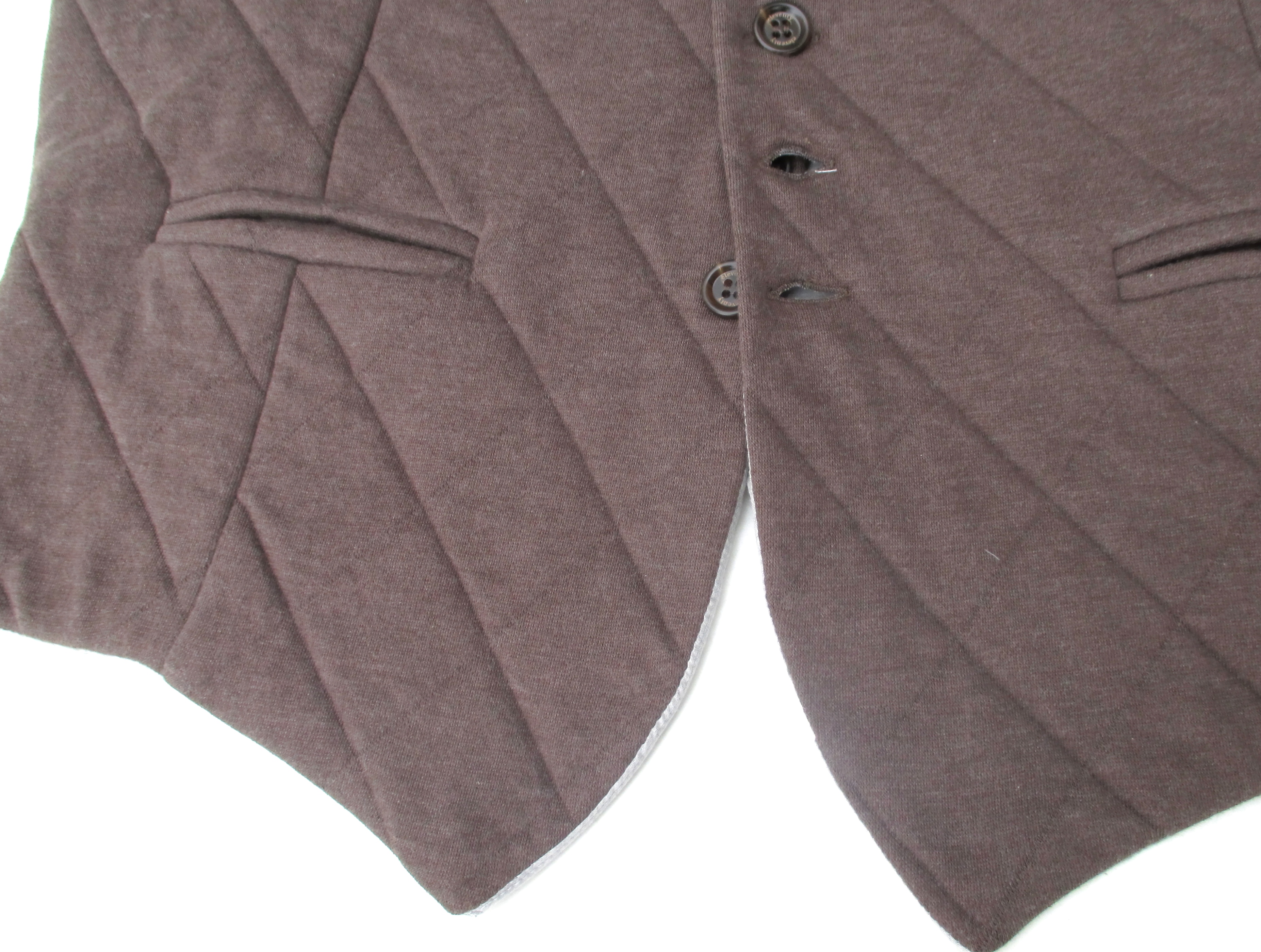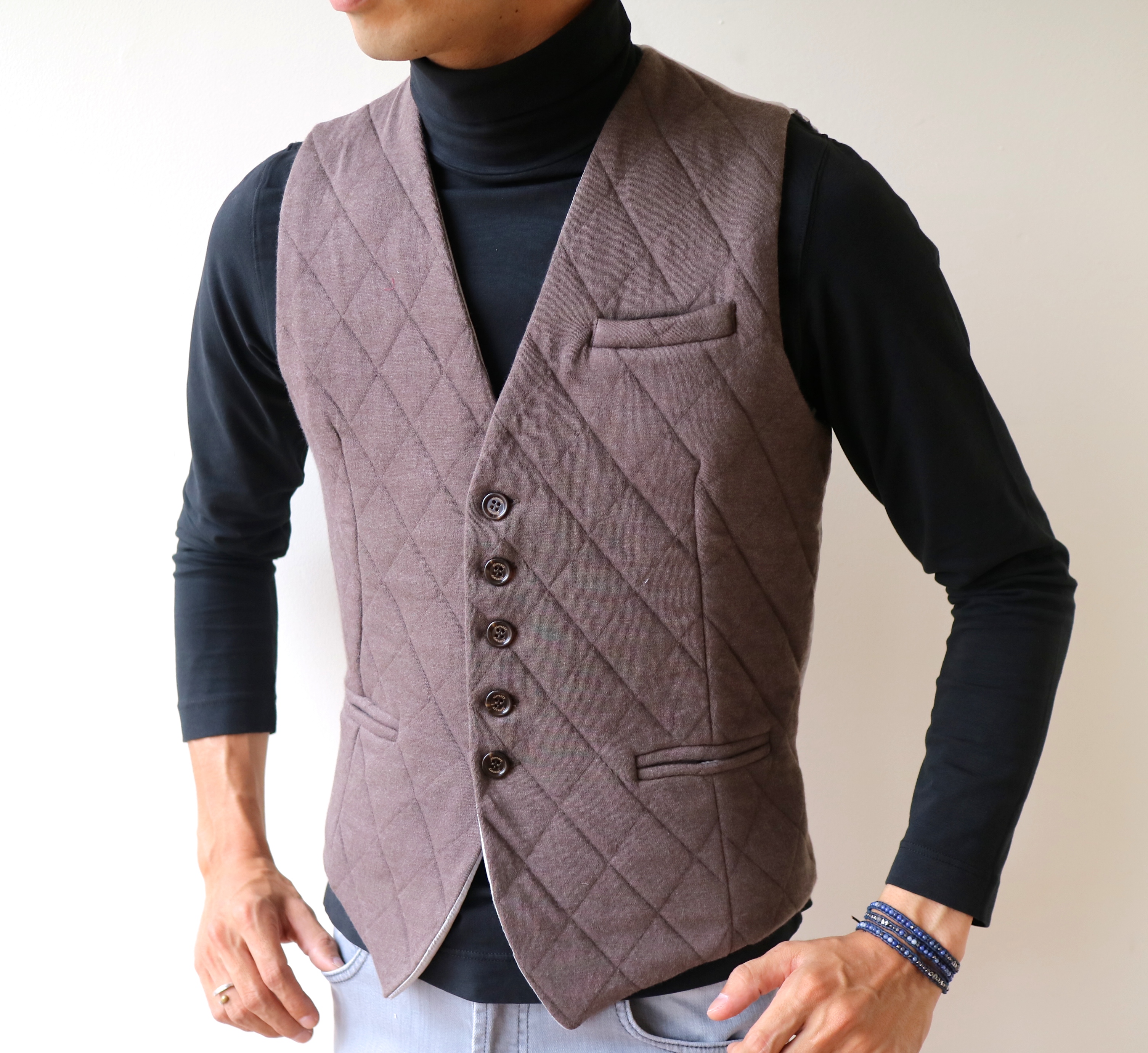 お洒落はさり気なさが肝...なんて耳にしますが、キルティングによるカジュアルな味付け具合が絶妙に感じます。また、他のジレと比べると、裾が尖って先鋭的な形をしており、シャープな見栄えに一役買ってくれそうです。