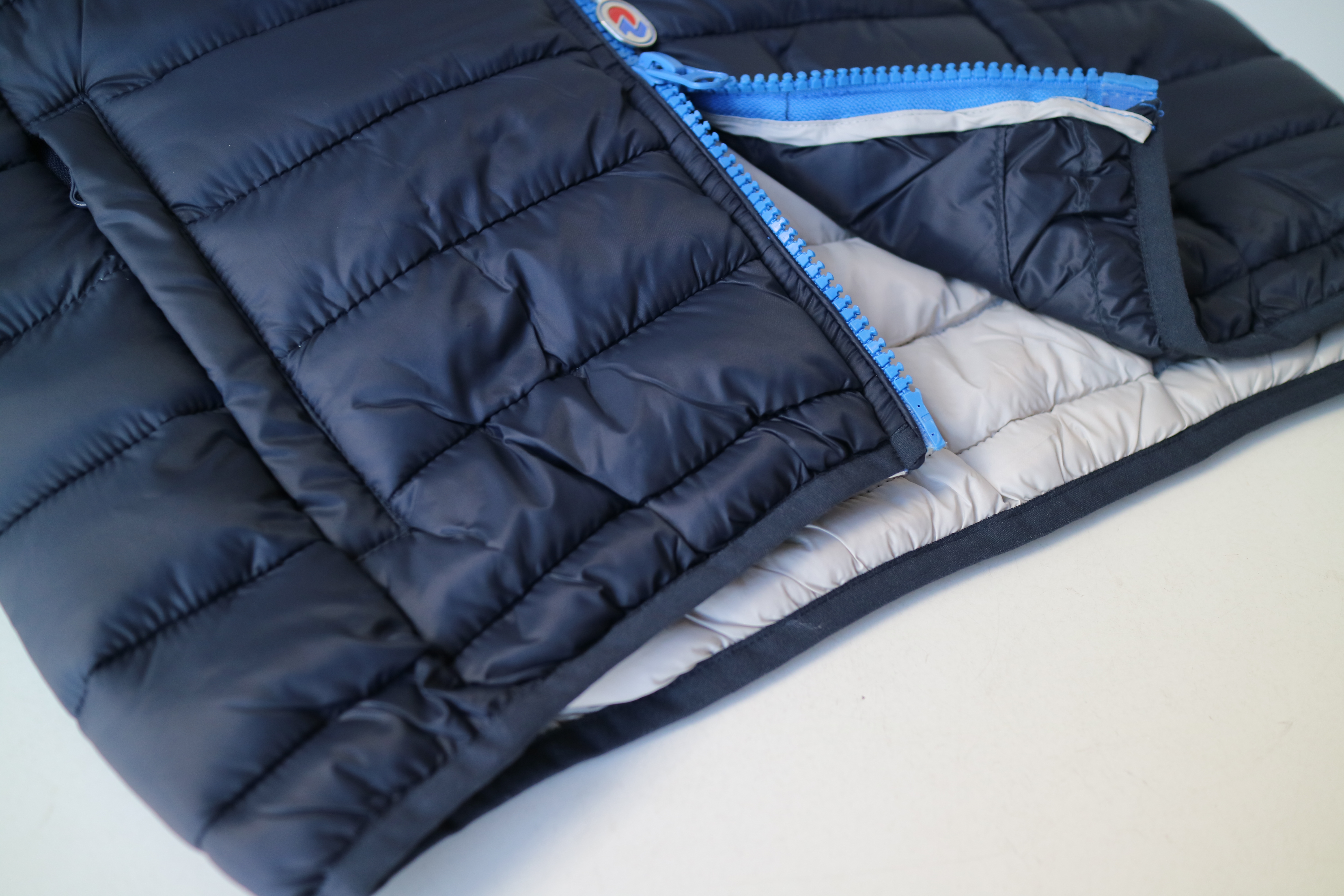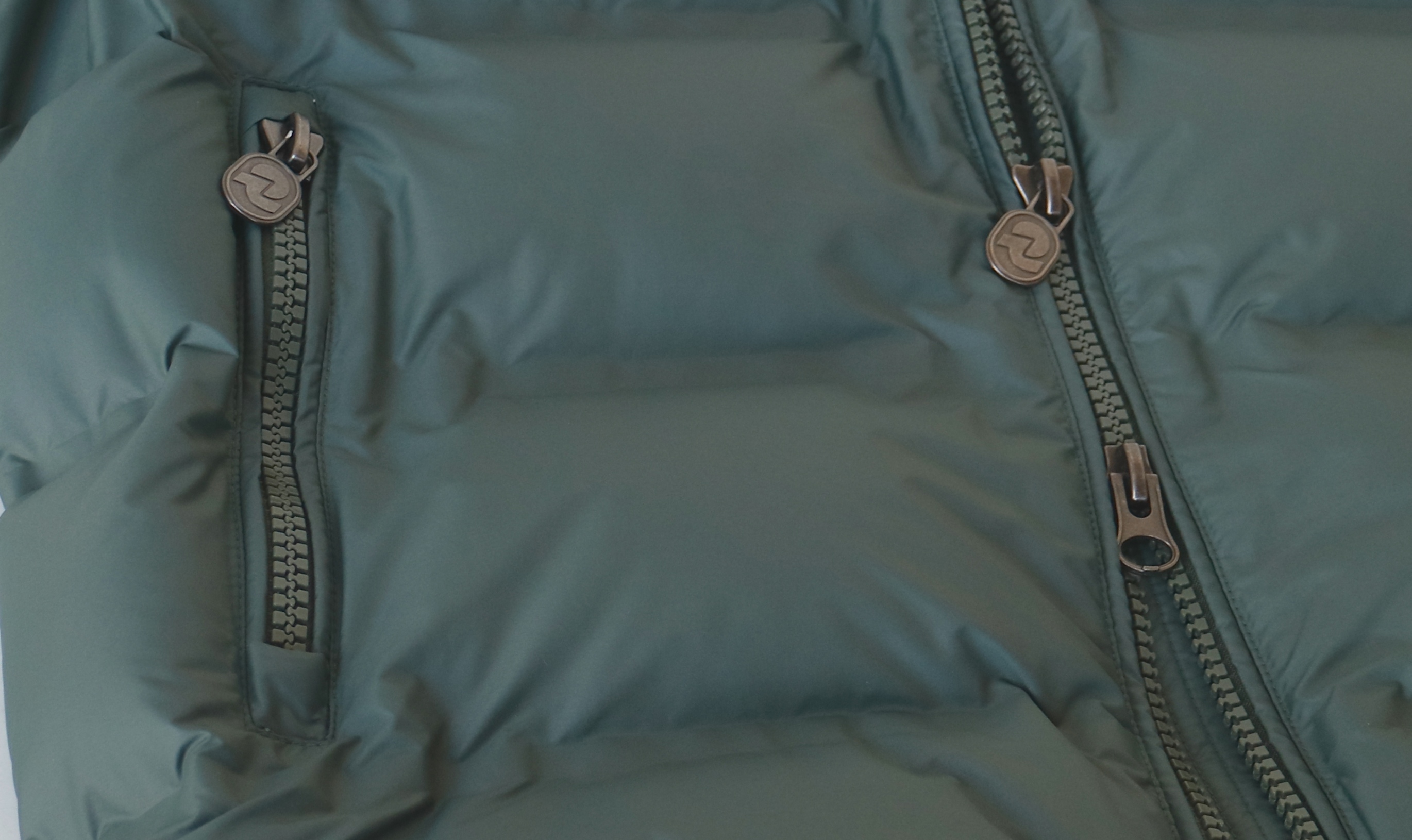 細部を見ていきましょう。フード付き(取り外しは出来ません)で、フード部分・アームホール・裾部分にゴムが取り付けられ、形を整えてくれます。ジップはダブルジップ、ポケットにもジップが付いています。また、それぞれのカラーと別のカラーの裏地があしらわれ、カジュアル感を演出しています。
