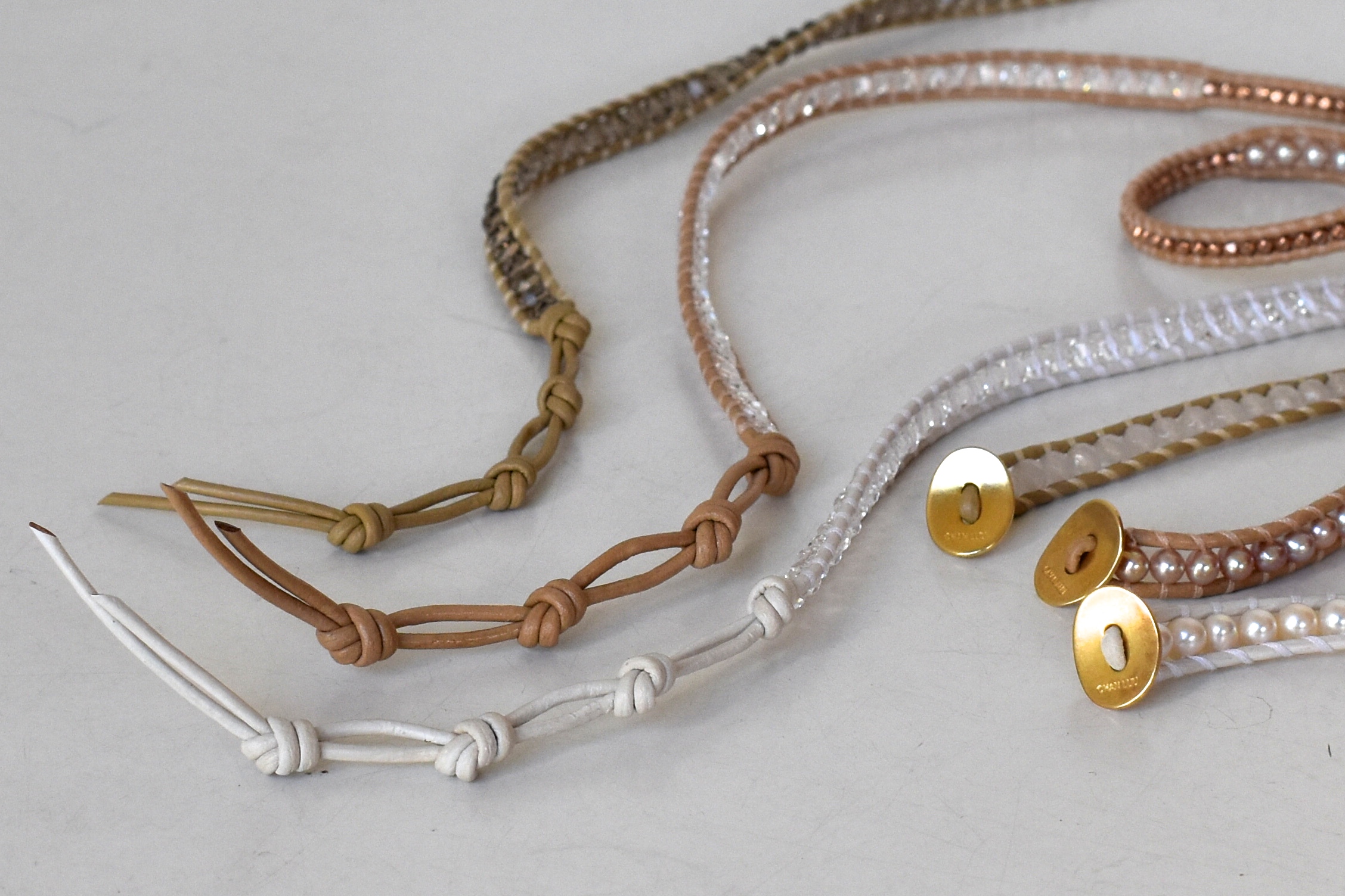 いつものチャンルーと比べ、ミクロなビーズとストーンを使ったブレスレット。小さいパーツの為、色をたくさん使っても喧しくなく、さり気なく使えそうな点が一番の魅力でしょうか。4色の色バリエーションがありますので、まずはすべてご覧ください。