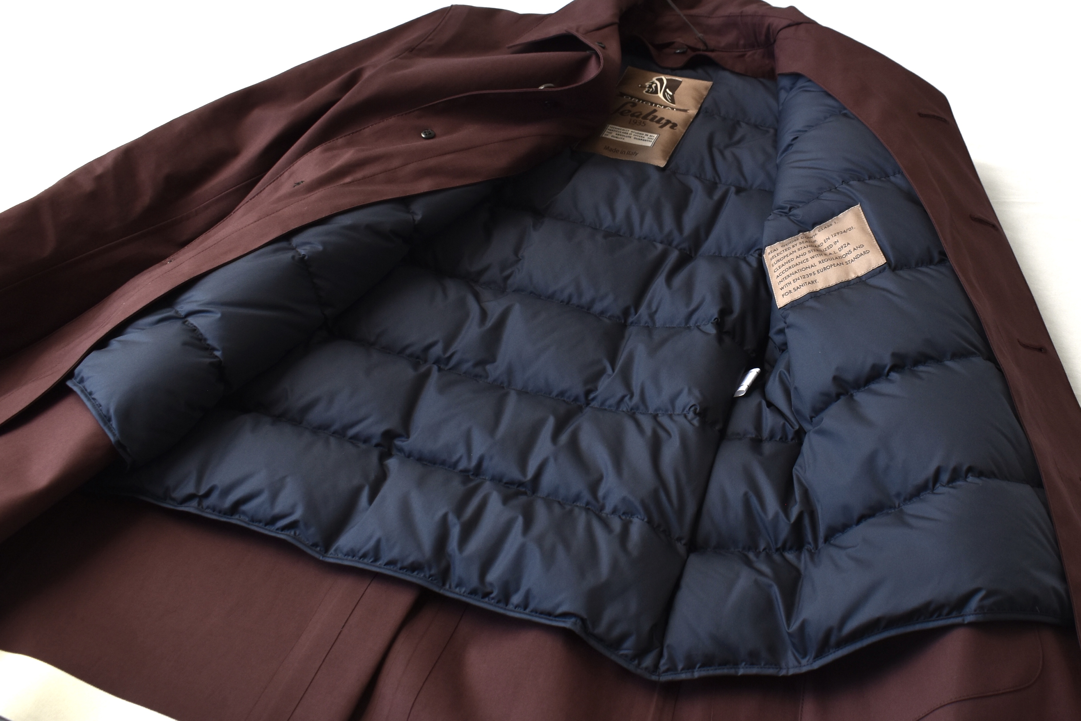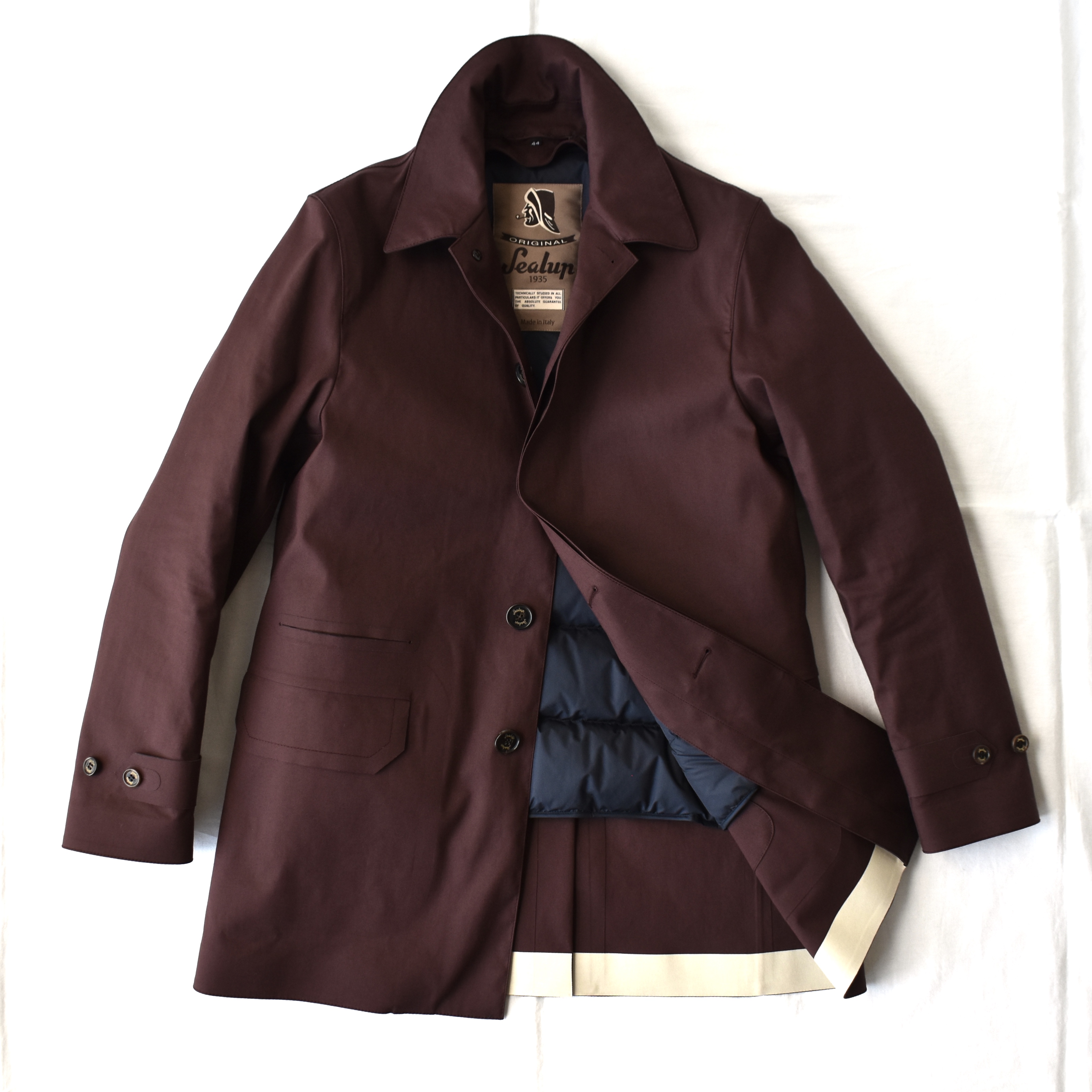 最後は、名門・Sealup/シーラップのコート。派手さはありませんが、細部にまで上質感が漂う、クラシックなコートです。44サイズしかなく、残念ながら自分には羽織れませんが、店頭で試着されたお客様の姿を見て、一目惚れしました。その後は、この方に!という44サイズのお客様に声掛けをしておりますが、未だ縁がありません。控えめなボルドーは、シンプルにネイビーやグレイのスーツの上に羽織るだけで、抜群に色気が出ると思います。