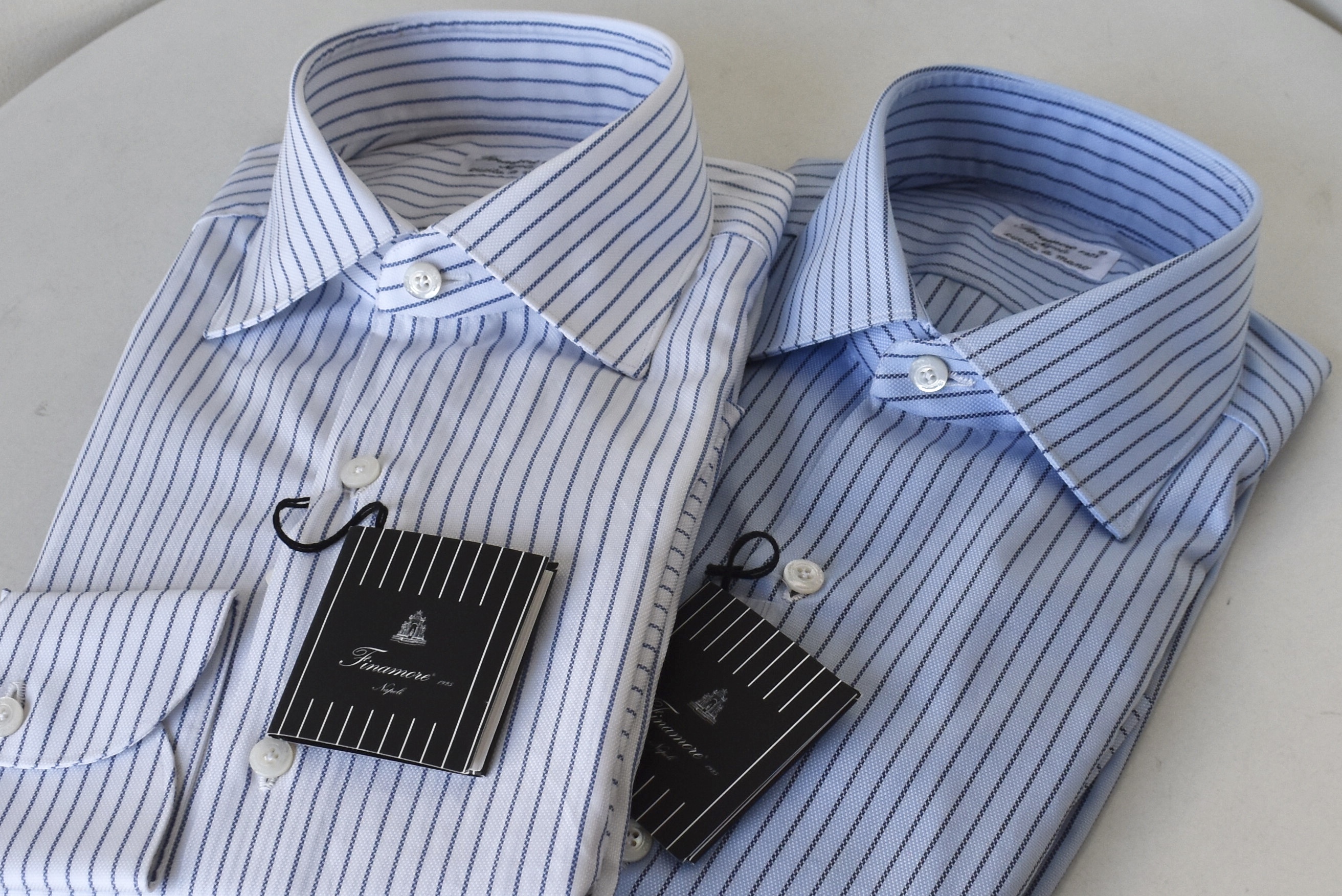 Finamore/フィナモレのドレスシャツは、7工程がハンドとなる高品質の代名詞。ブロードの無地で、タブカラー。ホワイトとサックスブルーの用意があり、ドレスアップにはもってこい。¥33,000(本体価格) → ¥23,100(本体価格)+税にて、期間限定でご提案です。