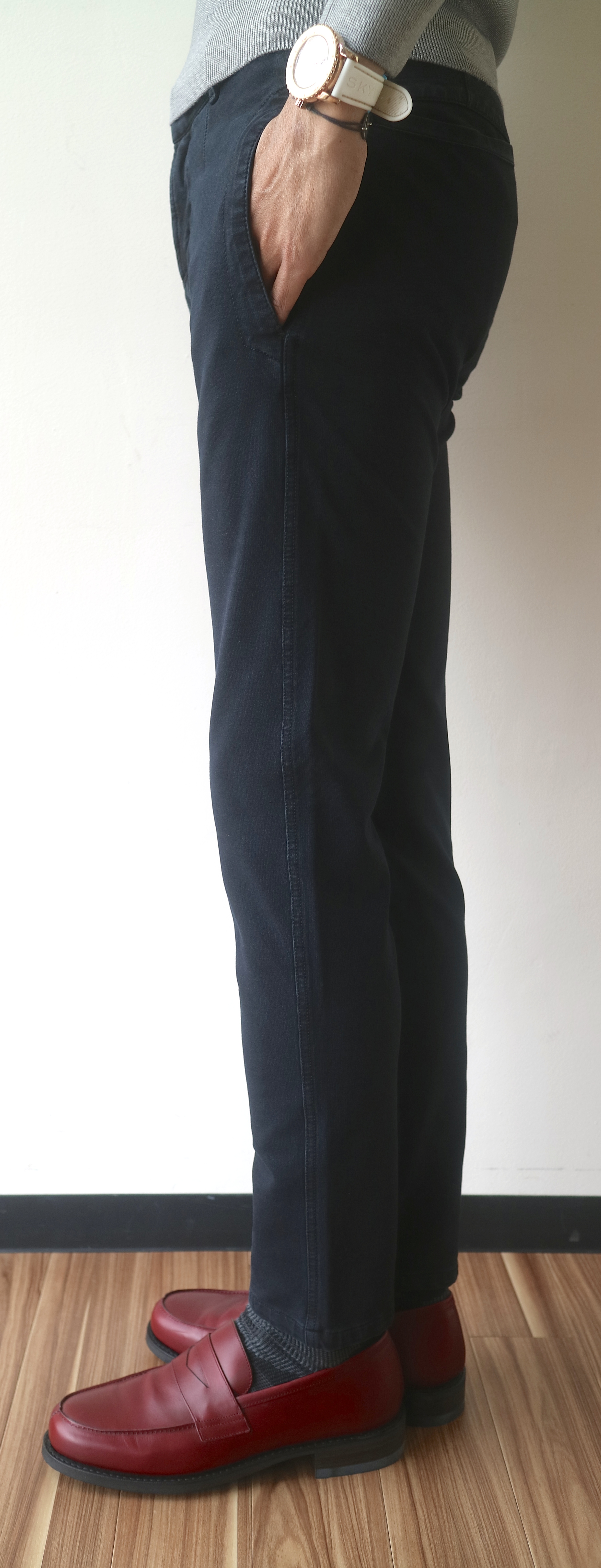 ケア・レーベルと言えば、定番シルエットの「slack/スラック」。スラントポケットの手の入れやすさ、見栄えの良さがどうにも好きで、今季は全て「slack/スラック」でご用意しました。モデルは身長183cm・体重66kg・胸囲93cmで、30インチを着用しています。