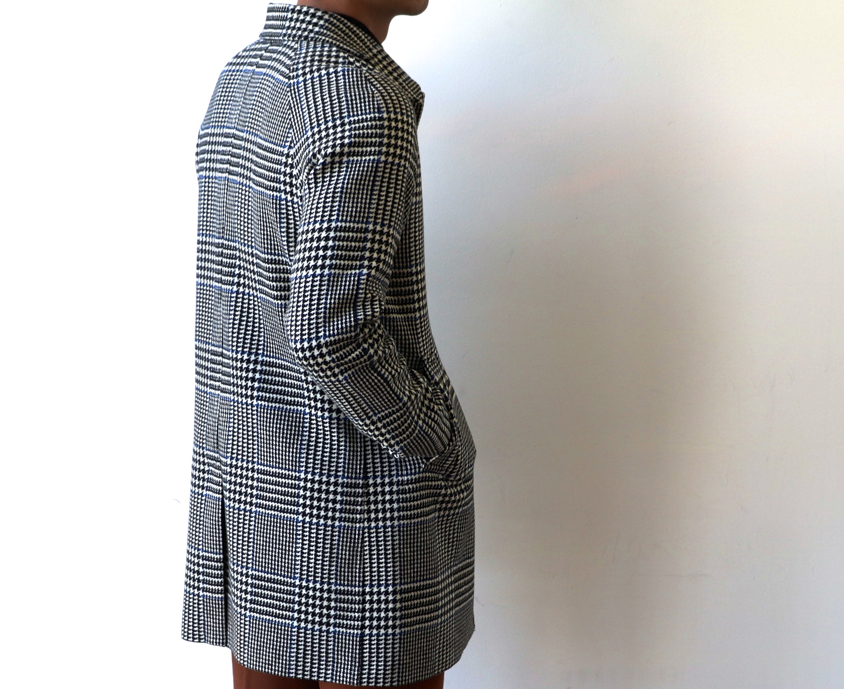 大柄のグレンチェックに、さり気なく走るライトブルーのペーン。どこから見てもウール調のクラシックな生地にしか見えませんが、チルコロですので、スウェット地です。リアルなプリントでこの表情を作り出しております。