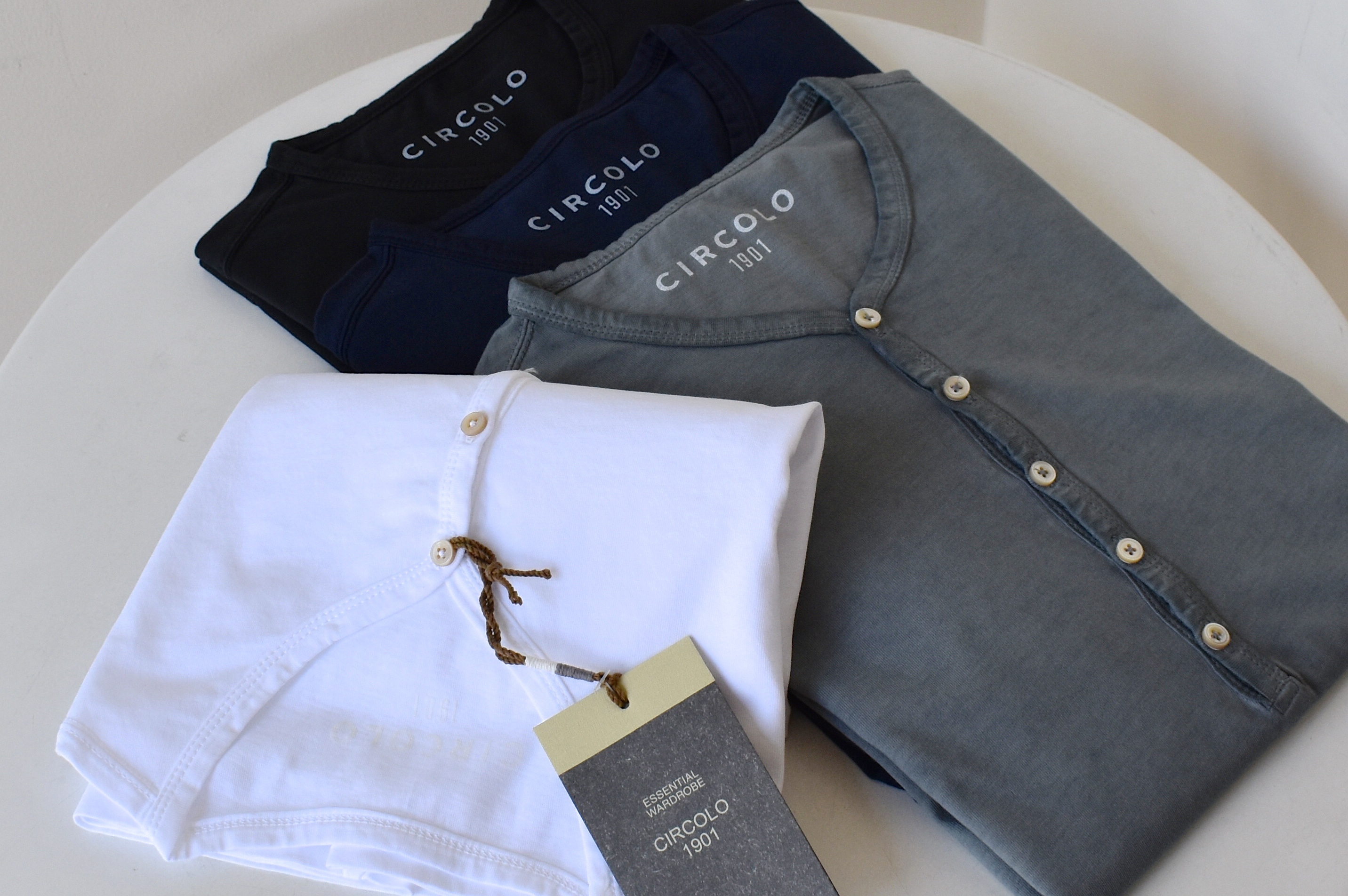 【CIRCOLO 1901/チルコロ】の半袖・ヘンリーネックTシャツ。本当はもう少し先までとっておくつもりでしたが、この暑さです。加えて、店頭で消化も進んでおり、欠品するサイズも出てきました。予定よりも前倒しでご紹介することといたしましょう。